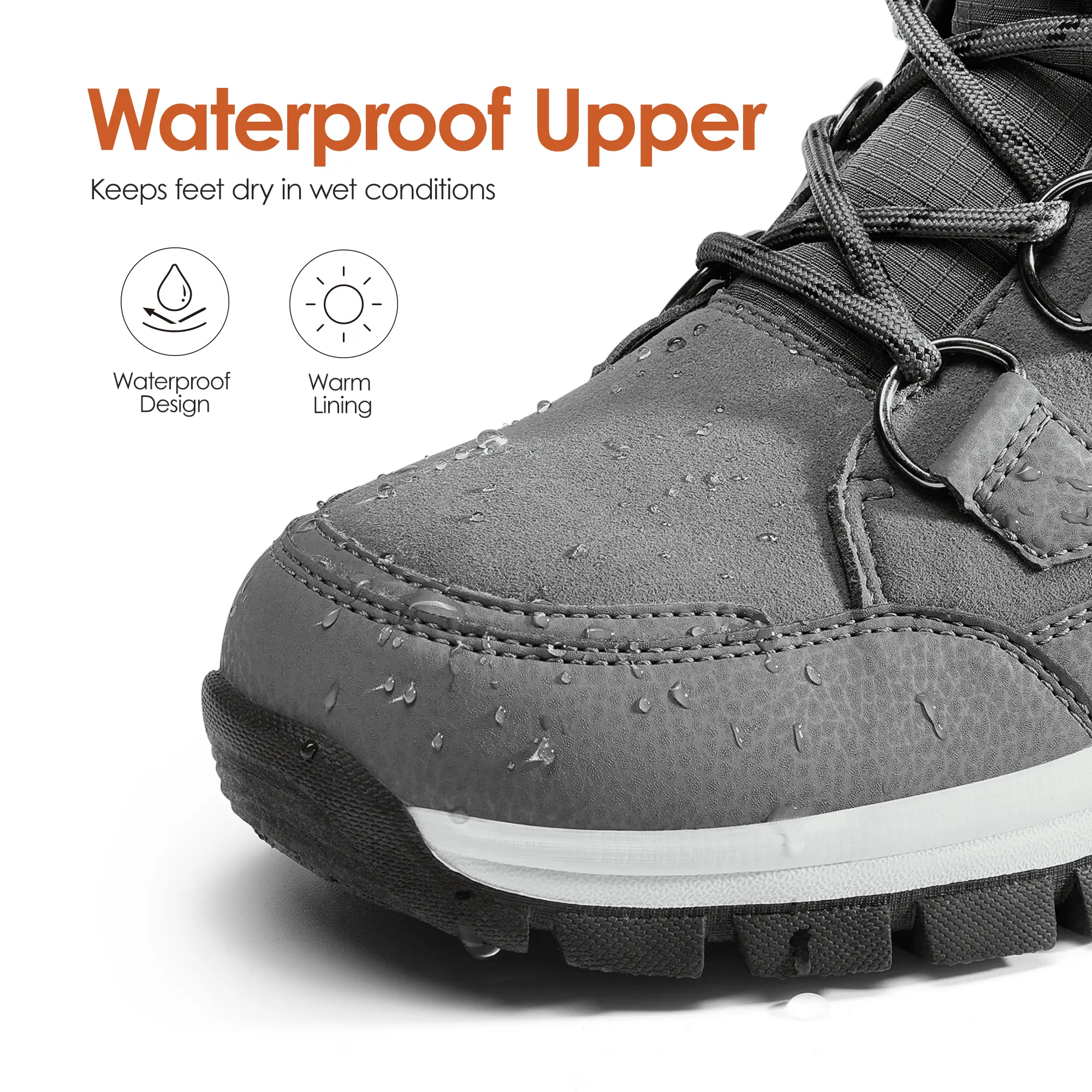 ·Waterproof Upper: Made with waterproof microfiber and abrasion-resistant Oxford fabric, these winter boots ensure durability. The gusset design is windproof and snowproof and effectively locks in the temperature keeping your feet insulated.