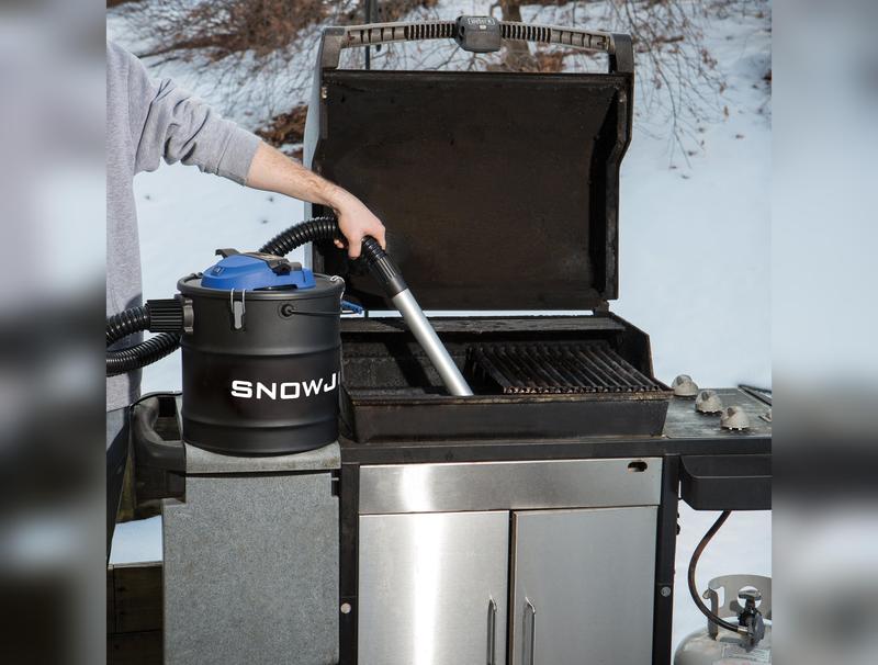 ASH IT OUT. The Snow Joe® ASHJ201 4.8-gallon Ash Vac is designed for cold ash pickup from wood stoves, pellet stoves, fireplaces, firepits, and BBQ grills. Equipped with a dual filtration system that employs both a coarse-dust pre-filter and a fine-dust pleated filter, the Ash Vac effectively traps dust particles during the ash cleaning process and prevents them from escaping into your breathing space. No more dusty mess around your home! Operation is simple: just insert the Ash Vac's aluminum intake nozzle into your pile of cold ash, flip the switch, and watch its powerful 4-amp motor generate up to 500 W of suction power and 42.4 cubic feet per minute of air flow. The Ash Vac's extra large metal canister stores up to 4.8 gallons of ashes, so you can finish your task without stopping to empty the container. Plus, it's a self-contained, bag-free system, which allows for easy ash removal with a simple lift of the container lid. Other features include a safety stop switch to prevent the Ash Vac from operating without a properly fitted filter, a wire filter basket to protect the fine dust filter, an easy carry handle, an inspection window blockage indicator, and an onboard cord/hose organizer for convenient storage. Backed by a full 2-year warranty, the Ash Vac ASHJ201 is the reliable cleanup tool you'll need to deal with any ash problem in a simple, clean and safe way.