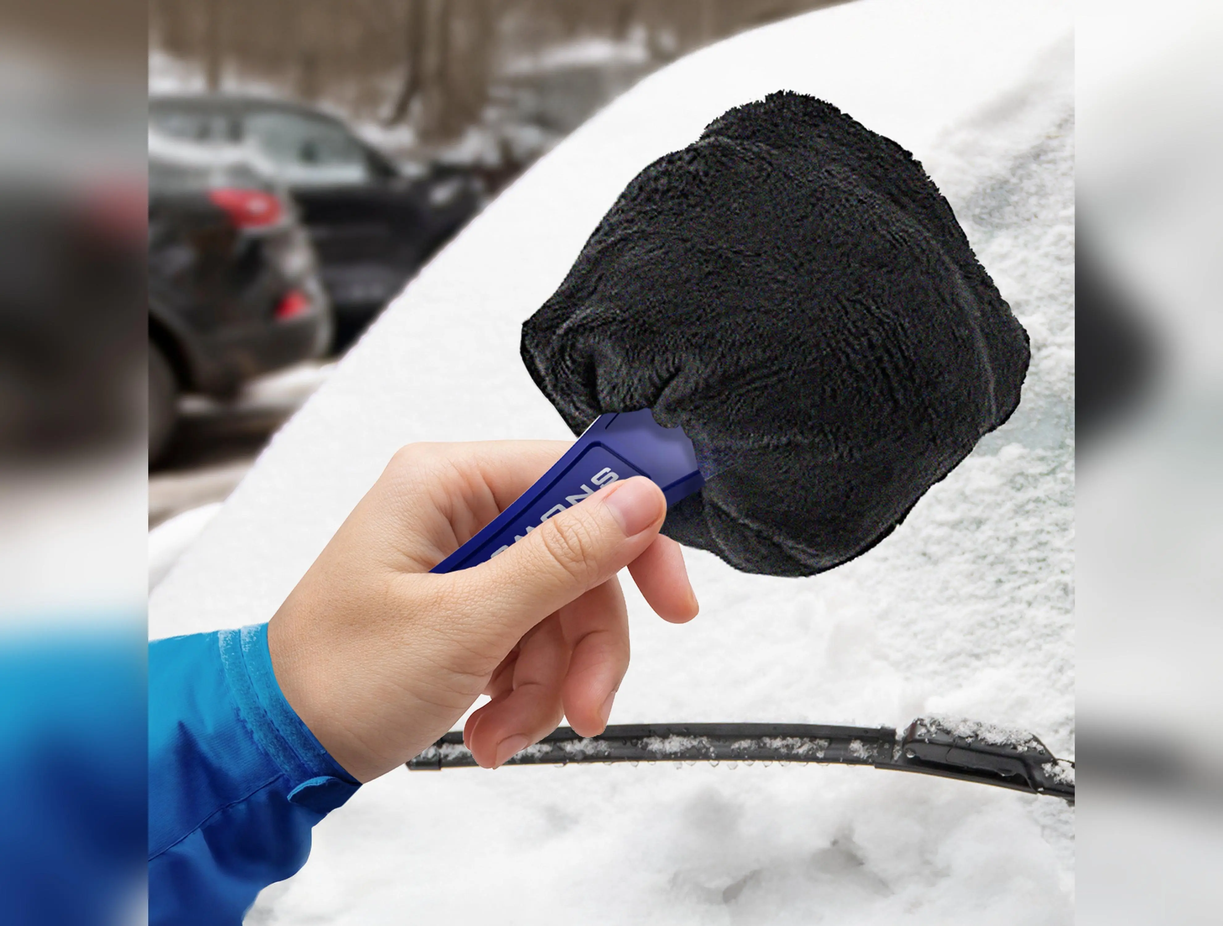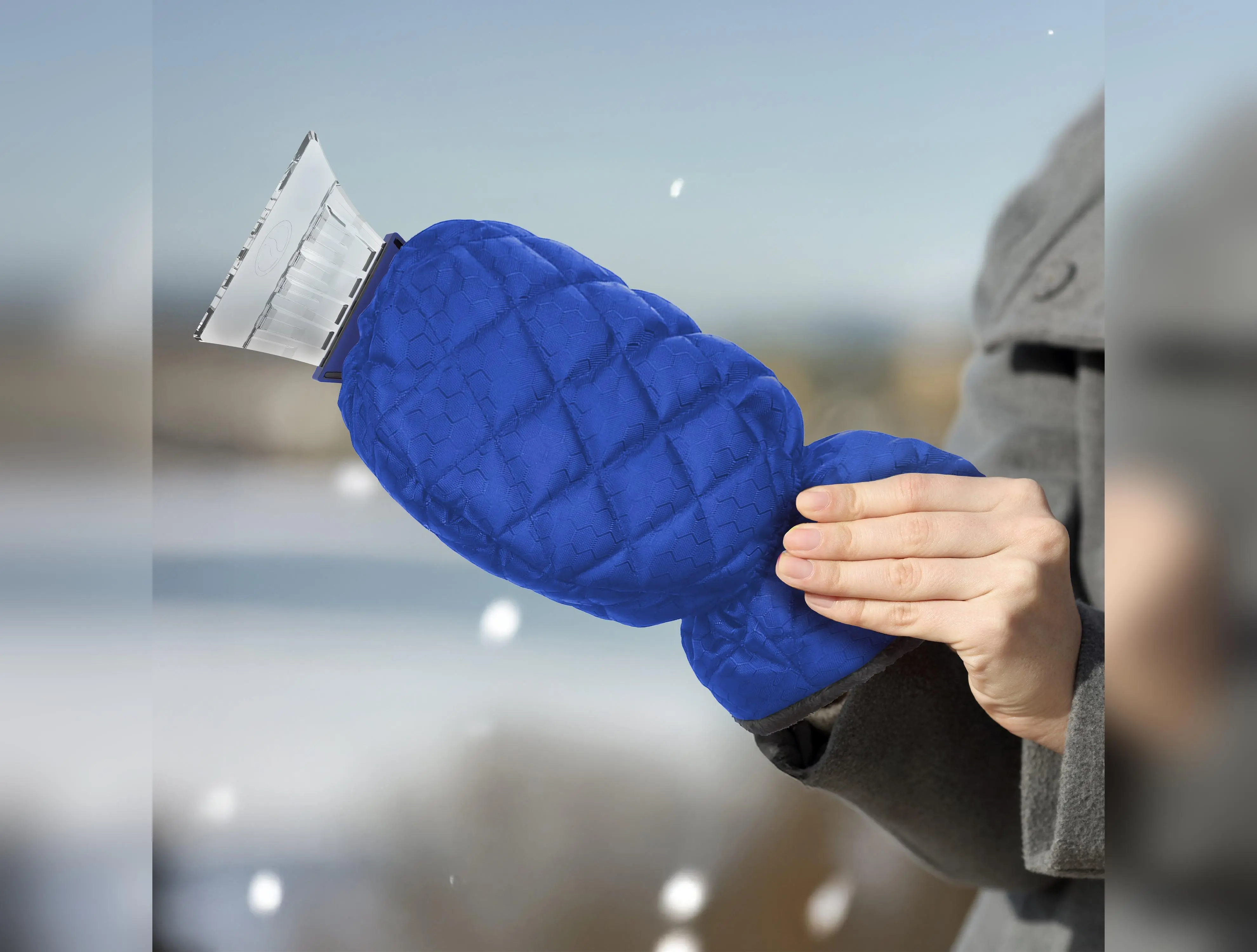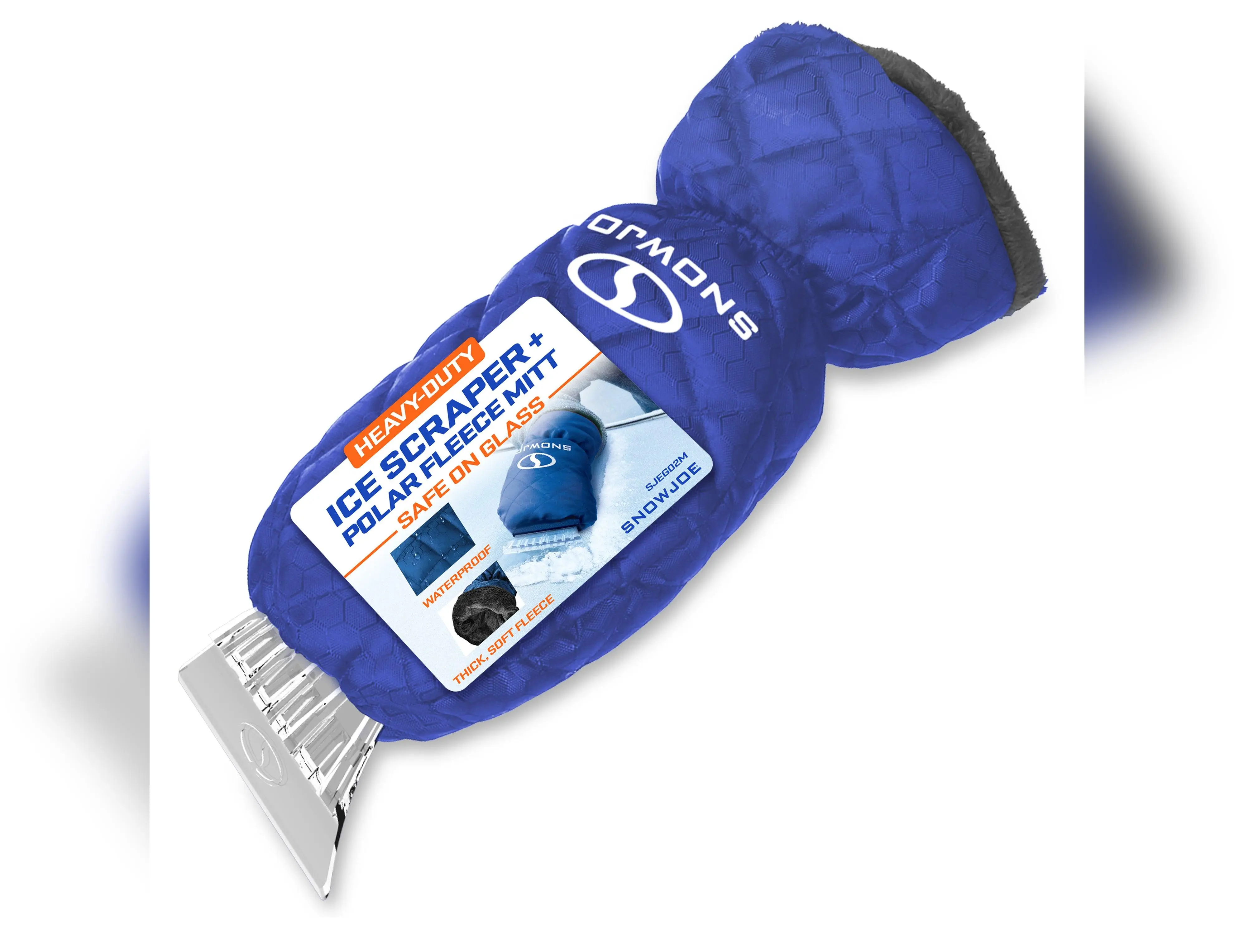 CHOP + SCRAPE WITH COMFORT! Removing winter snow and ice buildup from common surfaces has never been easier and more comfortable, thanks to the Heavy-Duty Ice Scraper + Polar Fleece Mitt, from Snow JoeÂź. The waterproof mitt sports an ultra-comfortable elastic wristband and thick, soft fleece that keeps your hands warm and dry. And the built-in, thermo-plastic polymer scraper features an ergonomic handle and durable ridges for chopping ice if need be. Safe on glass; ideal, compact size for vehicle storage, too!