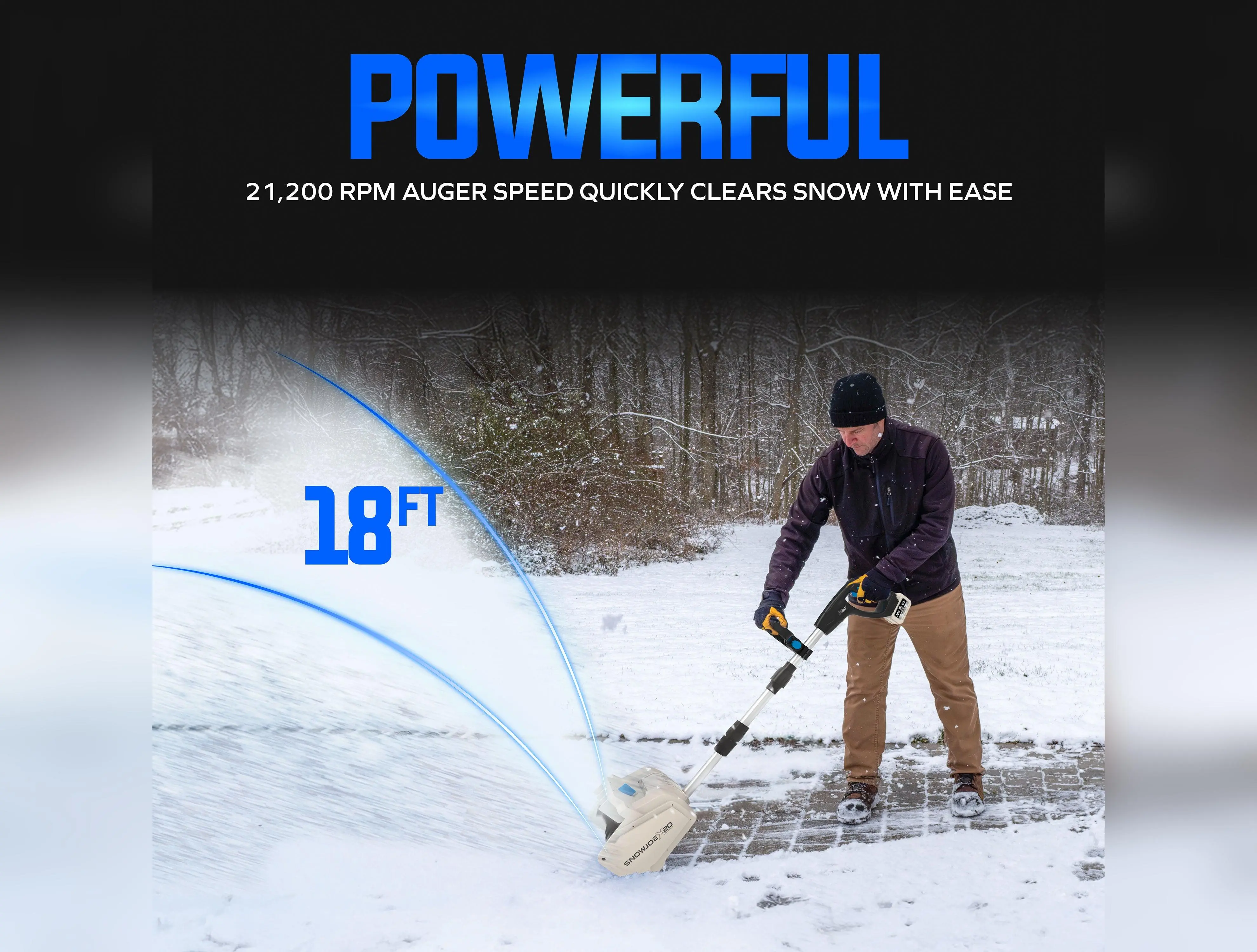 Powered by a robust 20-volt brushless motor, Snow Joe® delivers superior performance, efficiency, and durability with less maintenance. The high-speed 2-blade paddle auger plows through snow at up to 21,200 rpm, tossing it up to 18 feet away to keep your path clear. And weighing only 8.4 lbs, this cordless shovel is easy to maneuver and won't wear you out while you work.