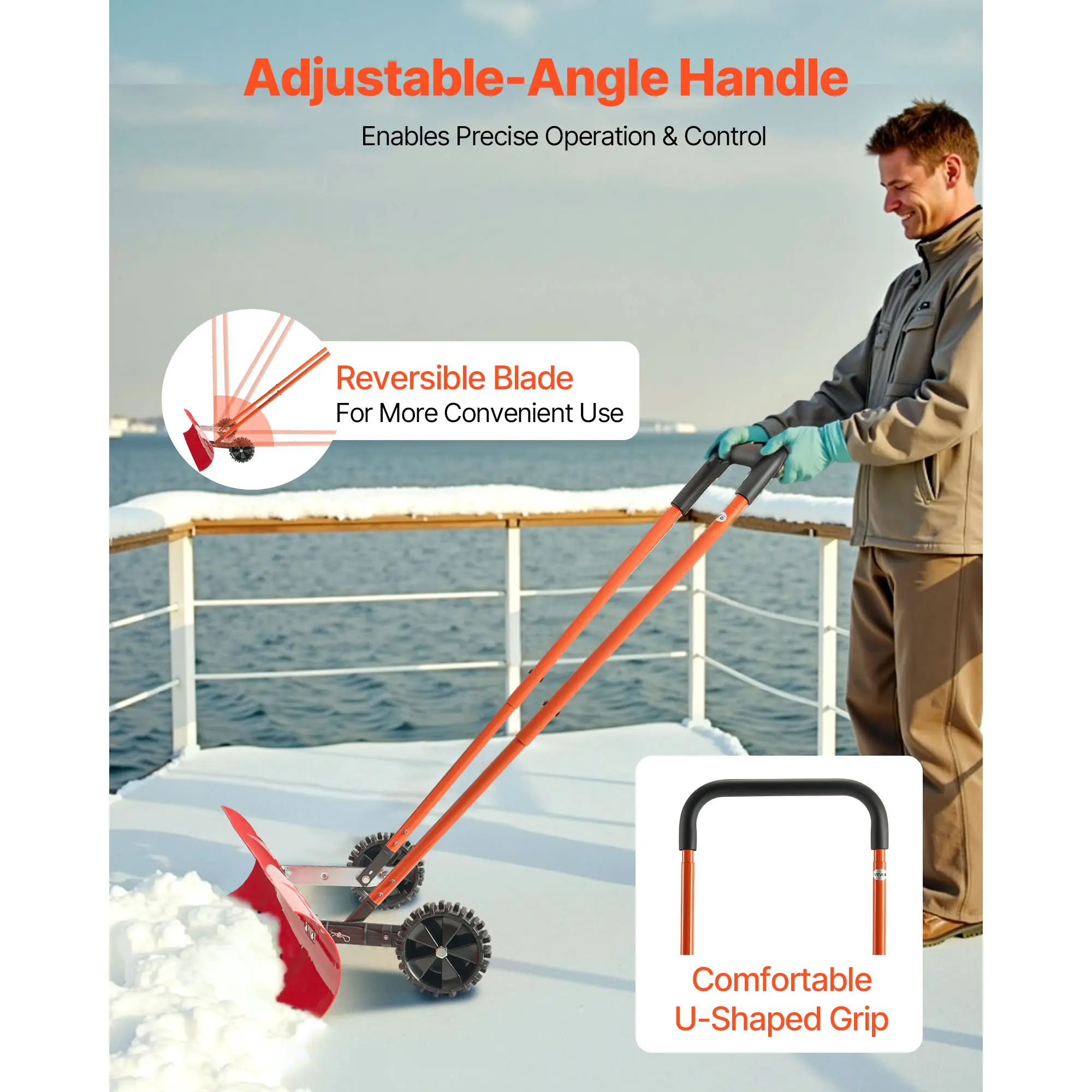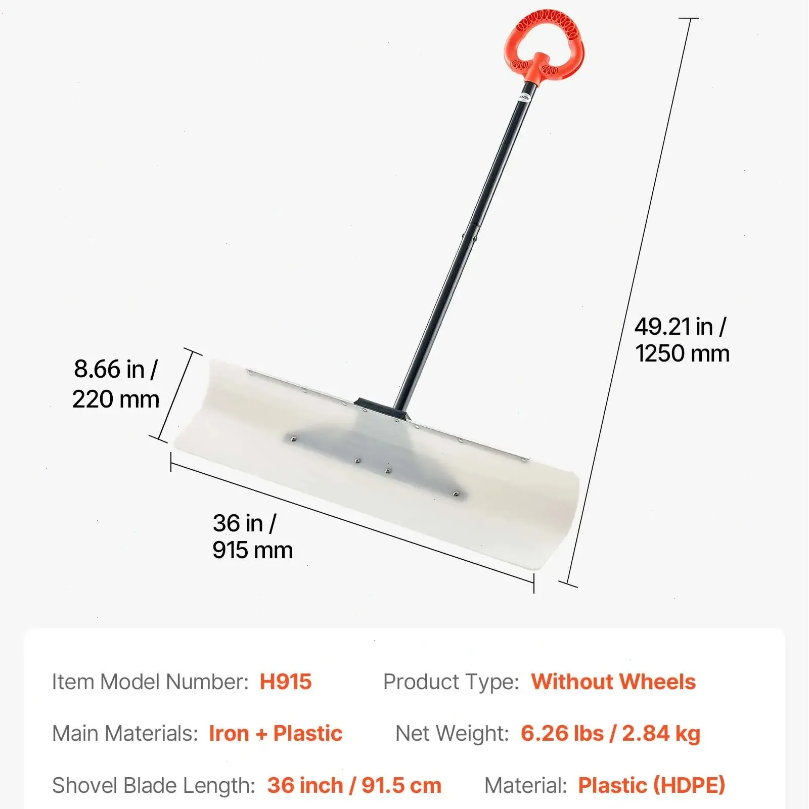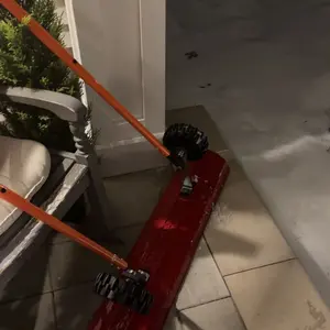 Don't buy!! Once I finally got it together, the ergonomics were awful. It’s awkward to push and doesn’t scrape the ground effectively, leaving a layer of snow behind. It feels like a cheap imitation of a professional tool. Handle is also poorly made and short. Would not recommend.