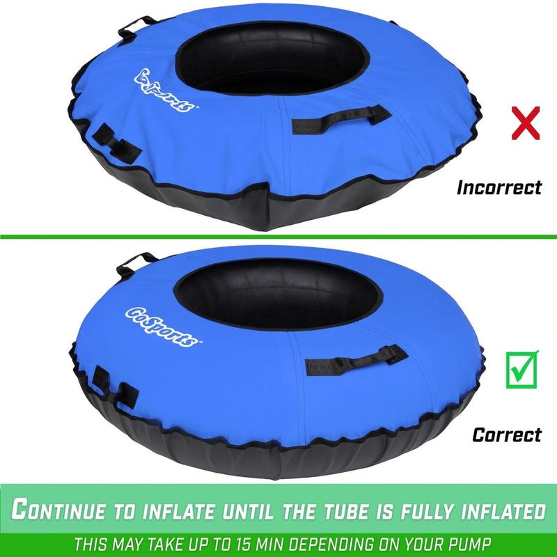 The GoSports 44 in Snow Tube features a reinforced DuraTube tire tube and a premium canvas cover with a coated bottom made to be both fun and functional for all of your snow sledding adventures! The double stitched canvas cover has built-in grip handles that allow you to ride with confidence! Plus, you can pull the snow tube back uphill with ease using the front tow strap for countless runs and hours of fun. Our GoSports no poke inflation valve works with any standard tire pump and is designed to stay out of your way while riding for maximum comfort and enjoyment. The coated bottom lets you glide down hills with ease and style, perfect for your next snow day! Enjoy the great outdoors this season with GoSports 44 in Snow Tube!
