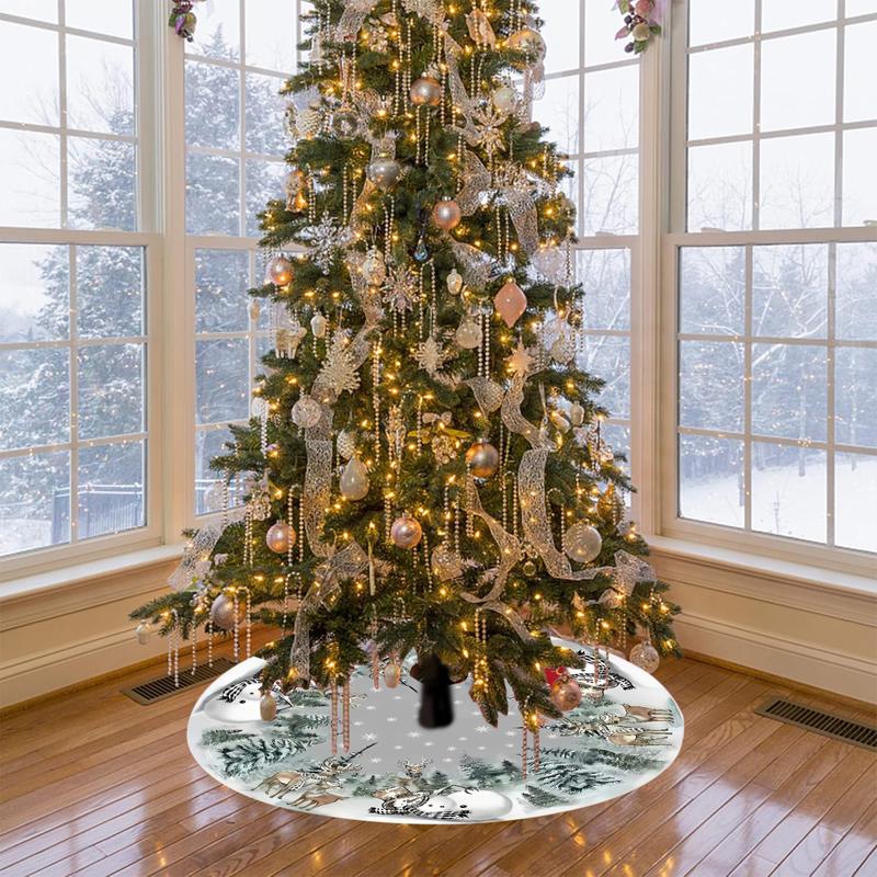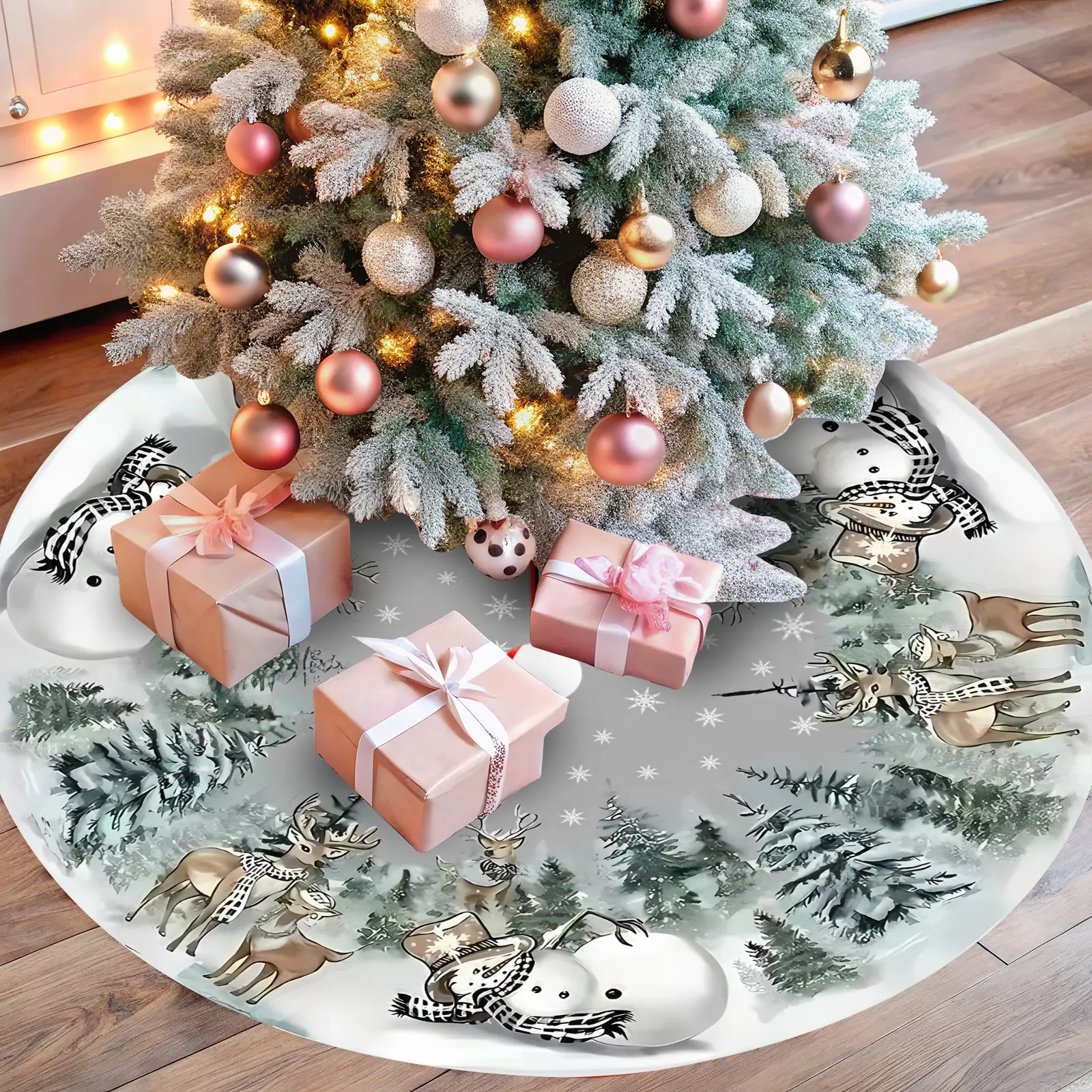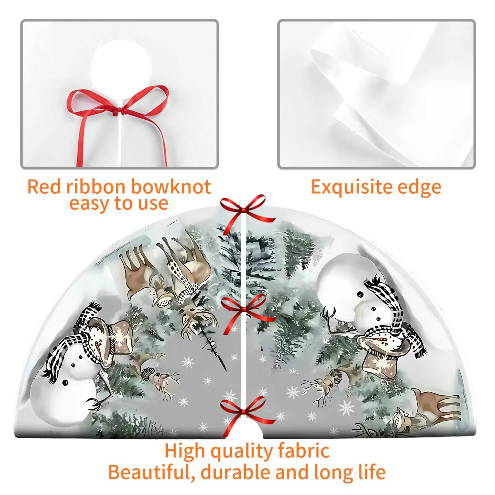 5. JOOCAR Snowman Reindeer Snowflake Christmas Tree Skirt 48 Inch, Winter Holiday Tree Mat Decoration