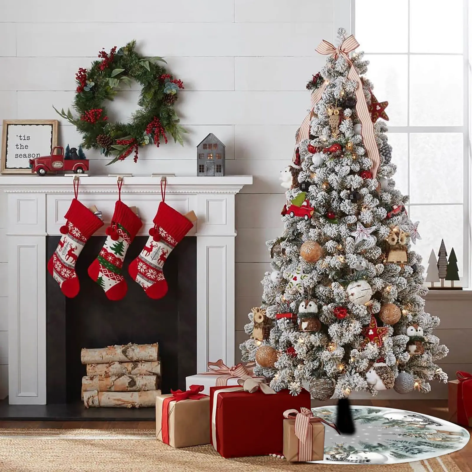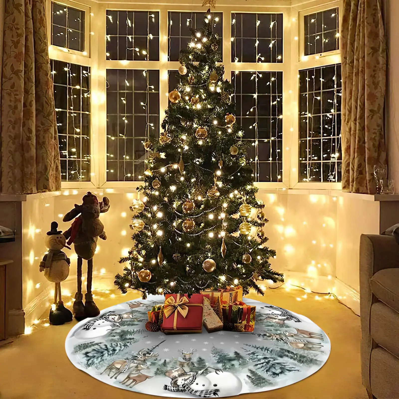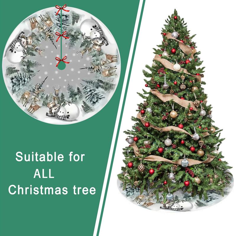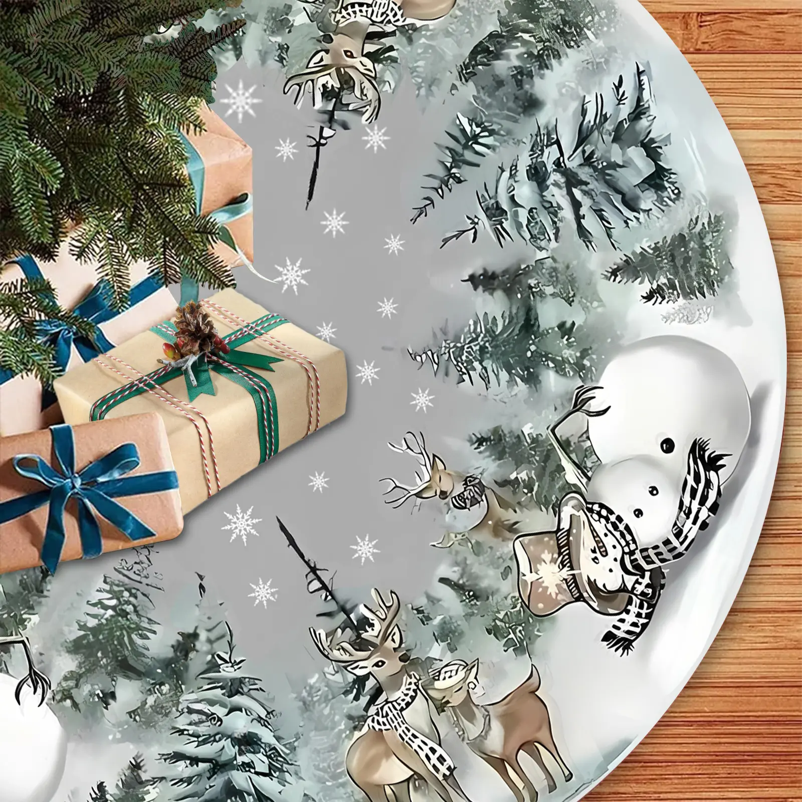 5. JOOCAR Snowman Reindeer Snowflake Christmas Tree Skirt 48 Inch, Winter Holiday Tree Mat Decoration