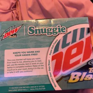Snuggie Mountain Dew Wearable Fleece Blanket with Sleeves Stay cozy and hands-free with this original wearable blanket designed for ultimate relaxation. Whether you're gaming, reading, or just lounging, the oversized sleeves keep you warm without restricting movement. Perfect for chilly days at home, the lightweight fleece is easy to care for and ready to accompany you anywhere.