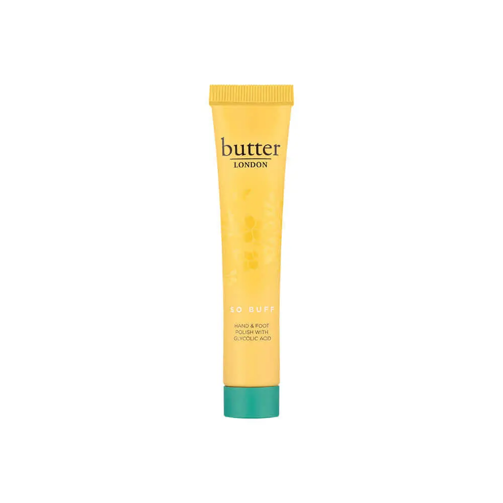 Butter London So Buff Hand & Foot Polish offers a luxurious at-home spa experience. This travel-sized product combines Glycolic Acid and Apricot Seed Powder for gentle exfoliation. Perfect for reducing dry skin, age spots, and uneven tones. It's ideal for prepping skin for moisturizing treatments, enhancing the longevity of manicures and pedicures.