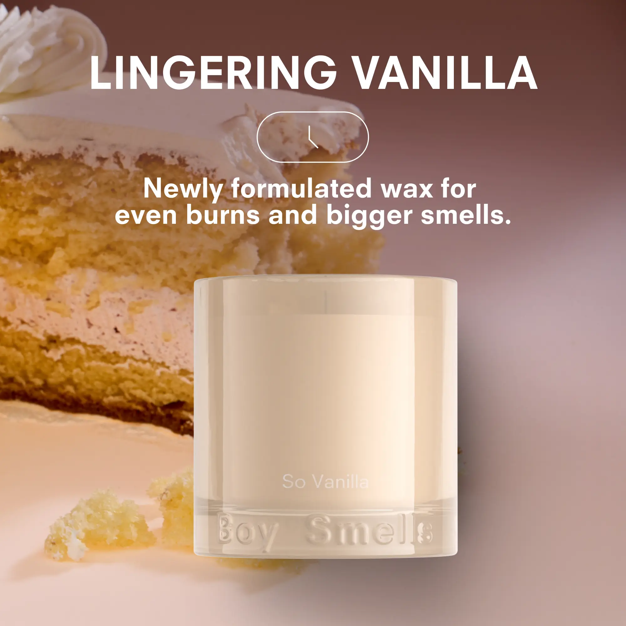 I love it I love boy smells candles you guys are the best candles make me feel so good and I love this so vanilla got so many compliments now you guys need to come up with one call sexy vanilla I want a sexy sexy vanilla candle it's 10/10 for me I will definitely be buying more of the vanillas