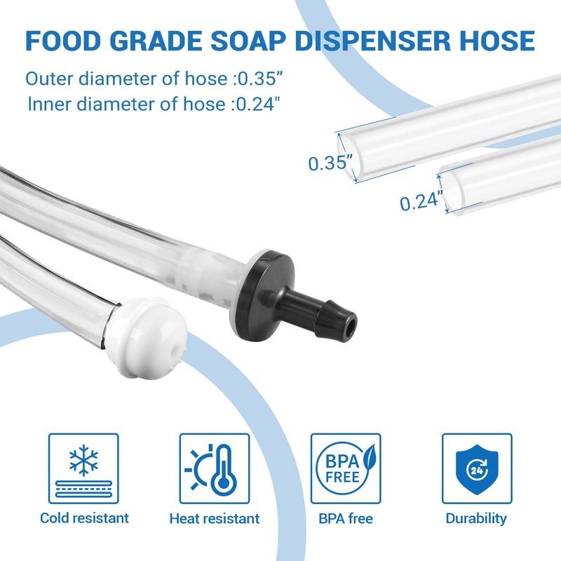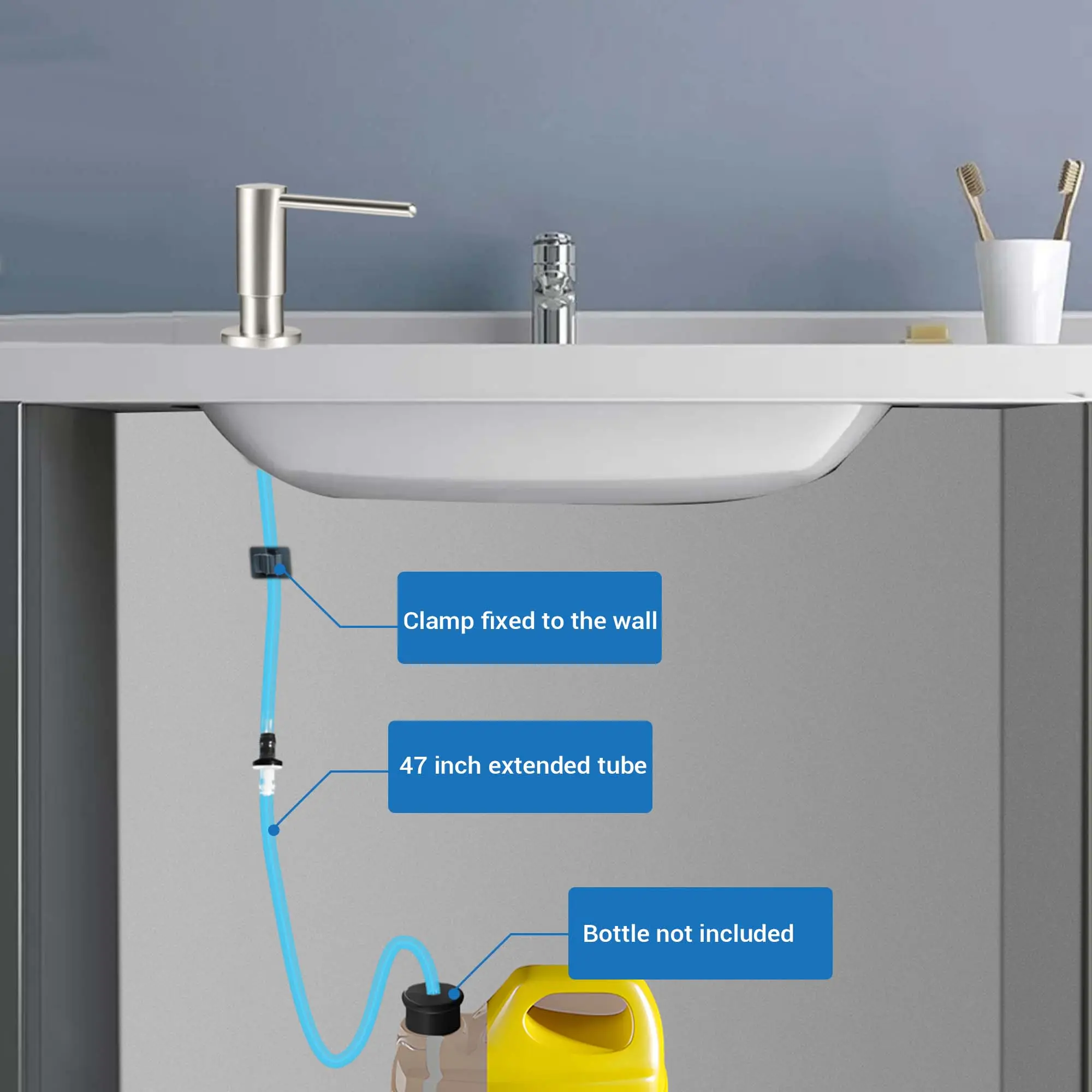 Soap dispensers for kitchen sink can be directly removed from the pump head of the soap dispenser on the kitchen countertop, and dishwashing detergent and hand sanitizer can be poured in from the top. It also comes with 47” Tube Kit , which is very convenient