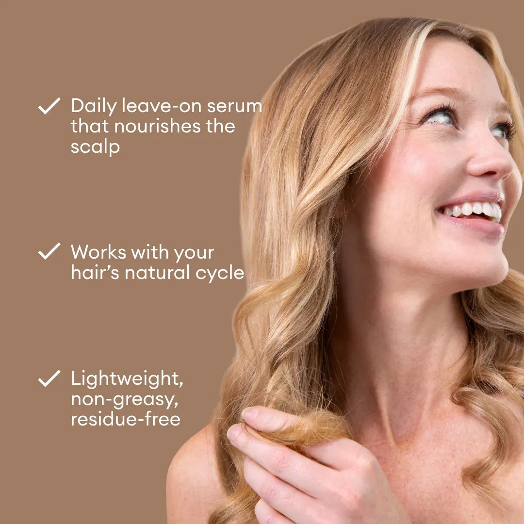 A clean, vitamin-rich scalp serum made for consistent daily use - designed to support stronger-looking hair and healthier scalp care over time.