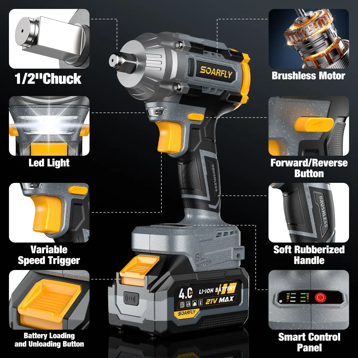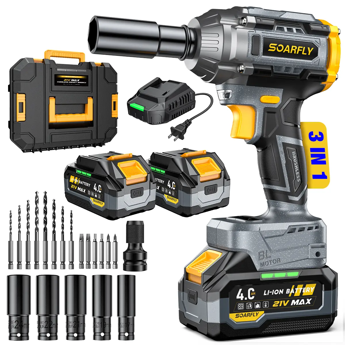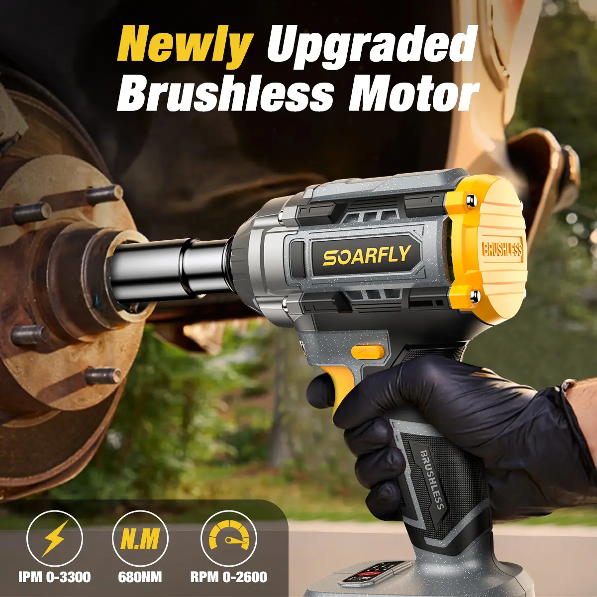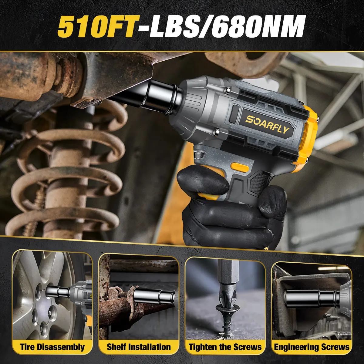 SOARFLY 3-in-1 Cordless Impact Wrench is a high-performance, multi-functional power tool designed for light-duty automotive work, DIY projects, and home repairs. With a 680NM (510 FT-LBS) torque output, it efficiently handles small car tire changes, furniture assembly, and general mechanical tasks. However, please note that this tool is not suitable for heavy-duty applications like large truck or SUV lug nuts—it is optimized for compact cars, motorcycles, and everyday fastening needs.