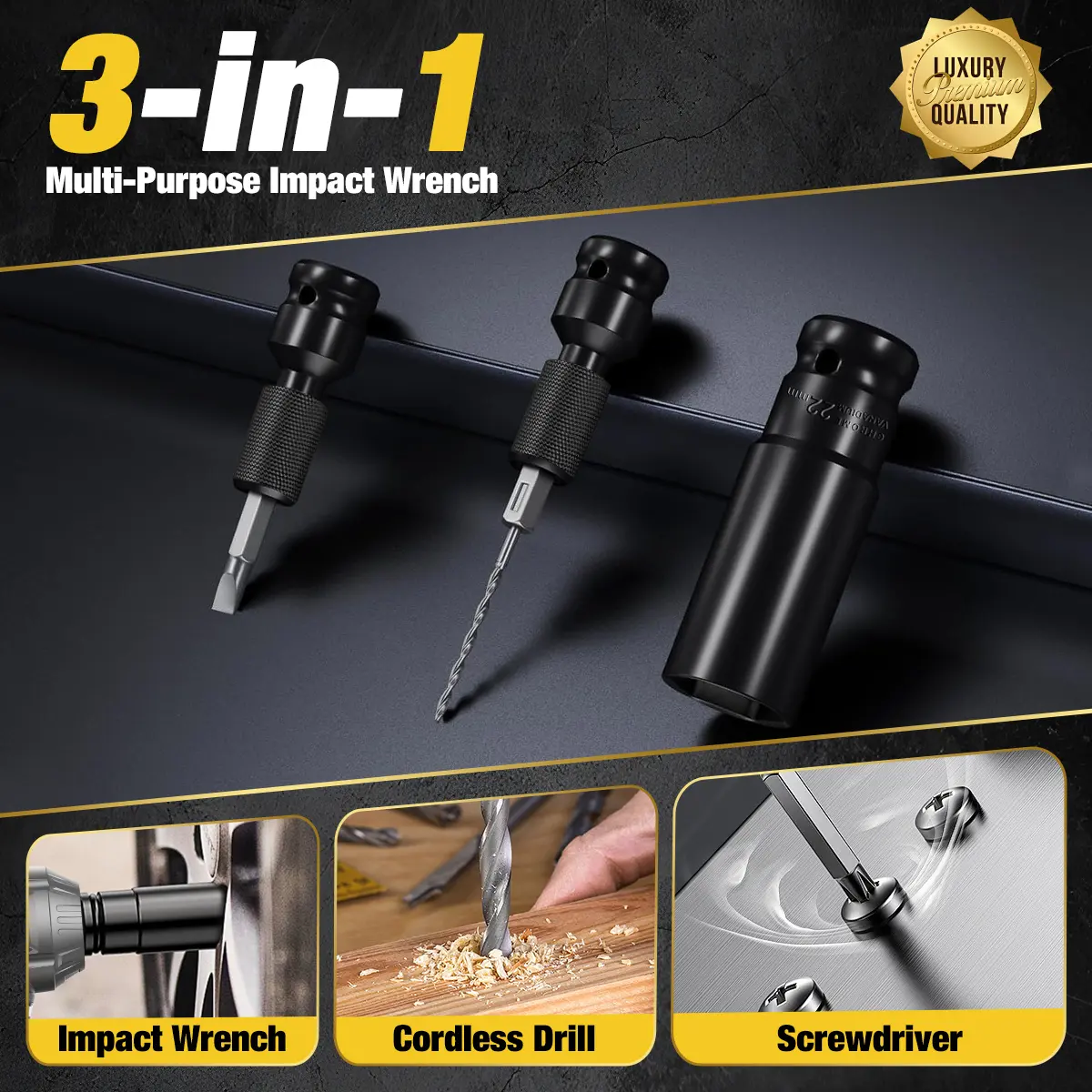 ✅ 3-in-1 Versatility – Functions as an impact wrench, drill, and screwdriver, reducing the need for multiple tools.