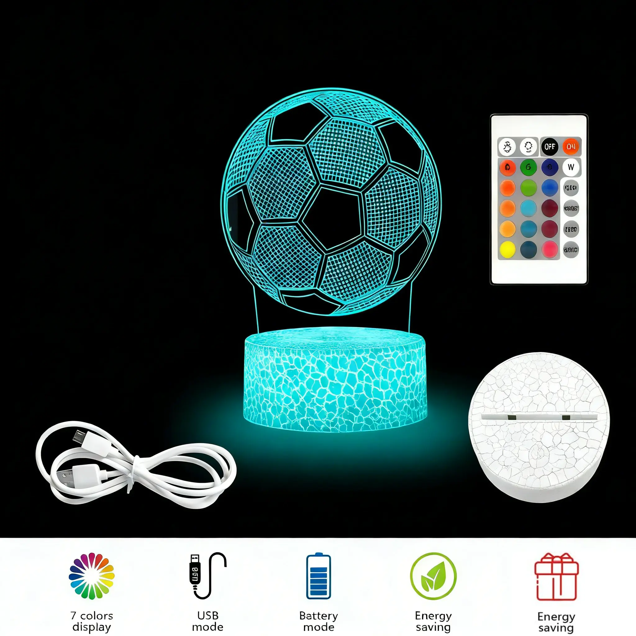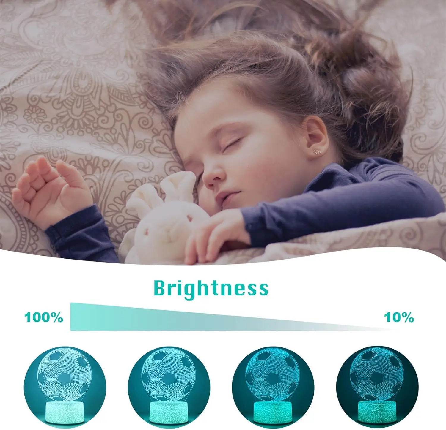 This lamp features a soccer 3D illusion design, perfect for kids' bedrooms. It creates a fun and engaging atmosphere. The lamp is ideal for boys, girls, and kids. It will surely bring joy and excitement. 🏆