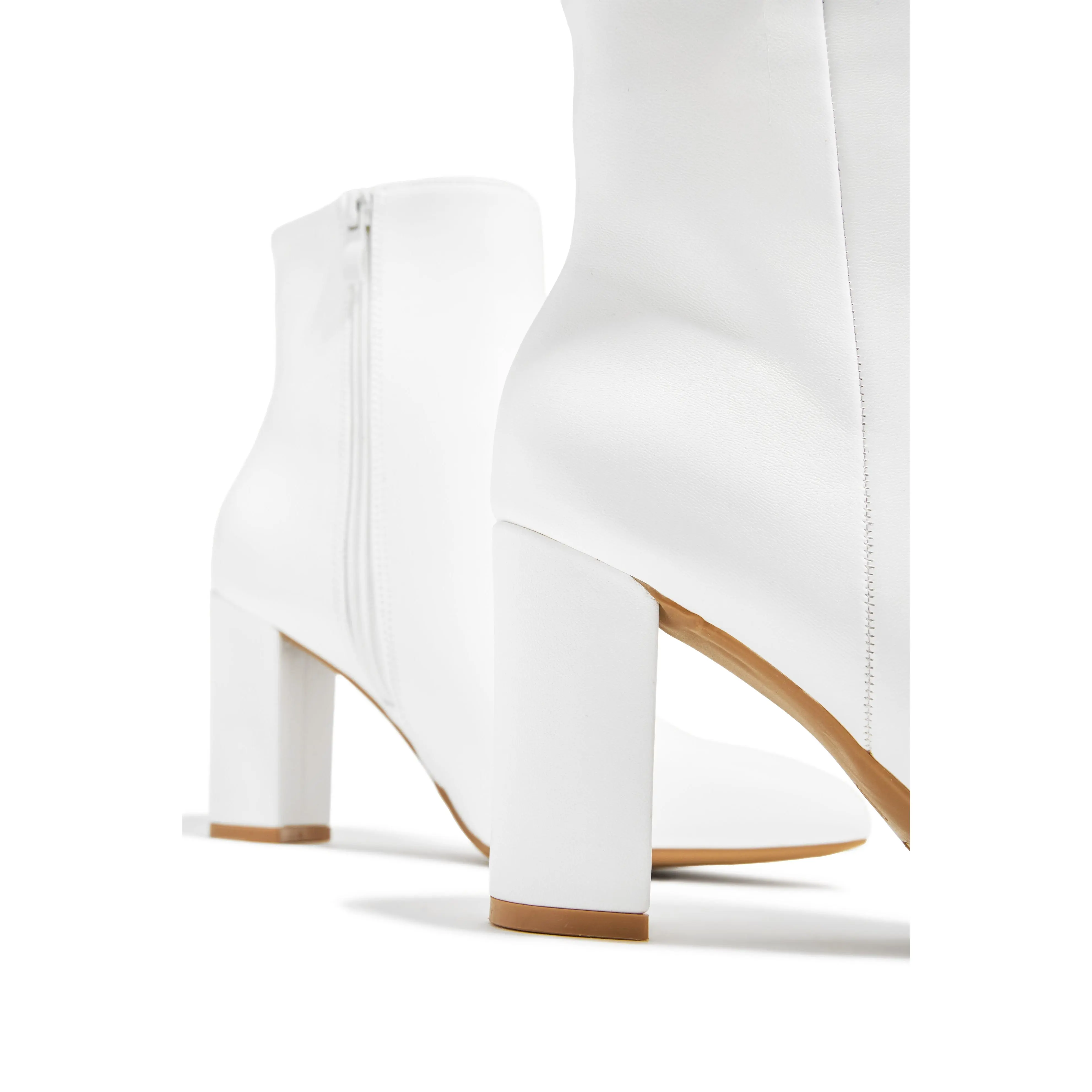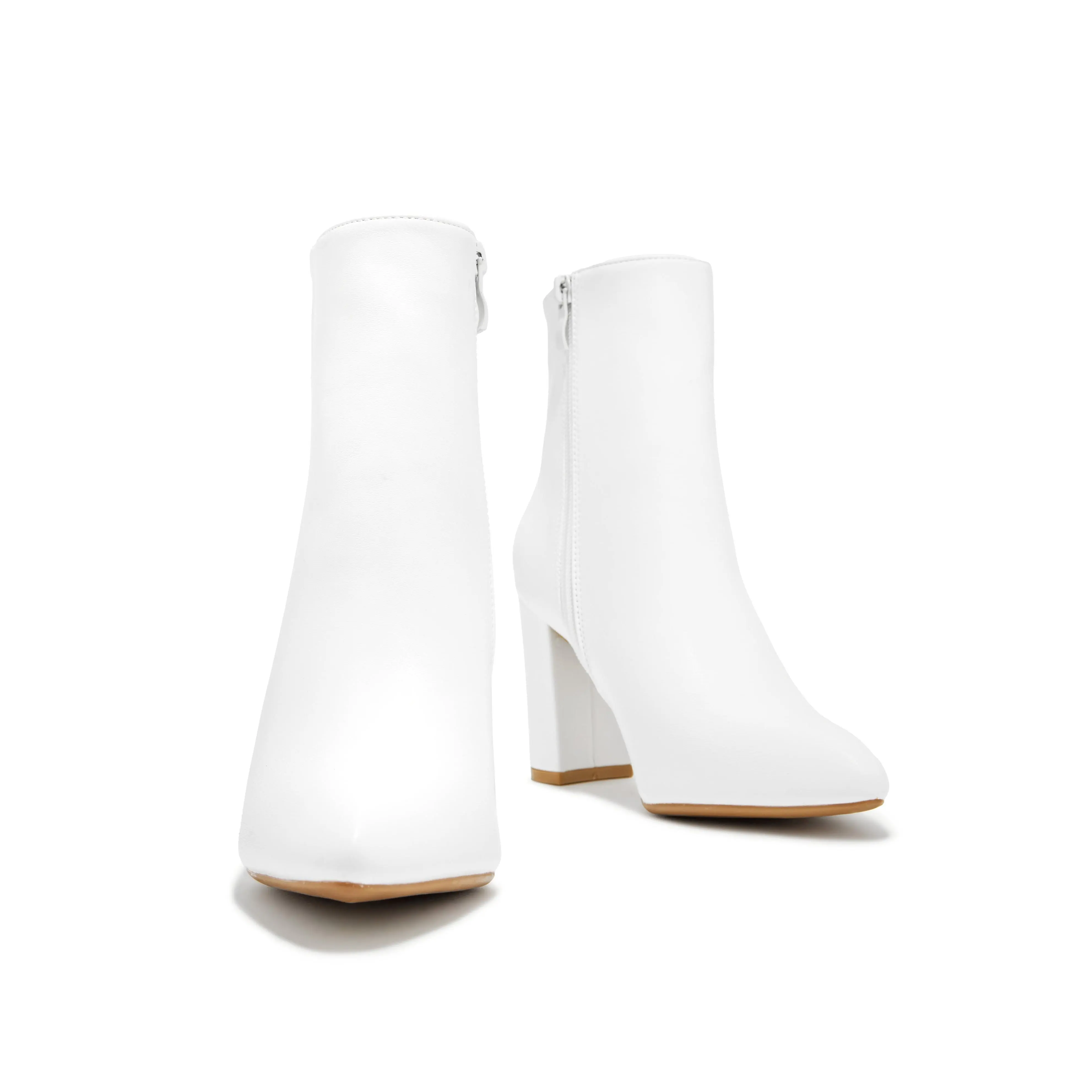 ·White Block Heel Ankle Boots