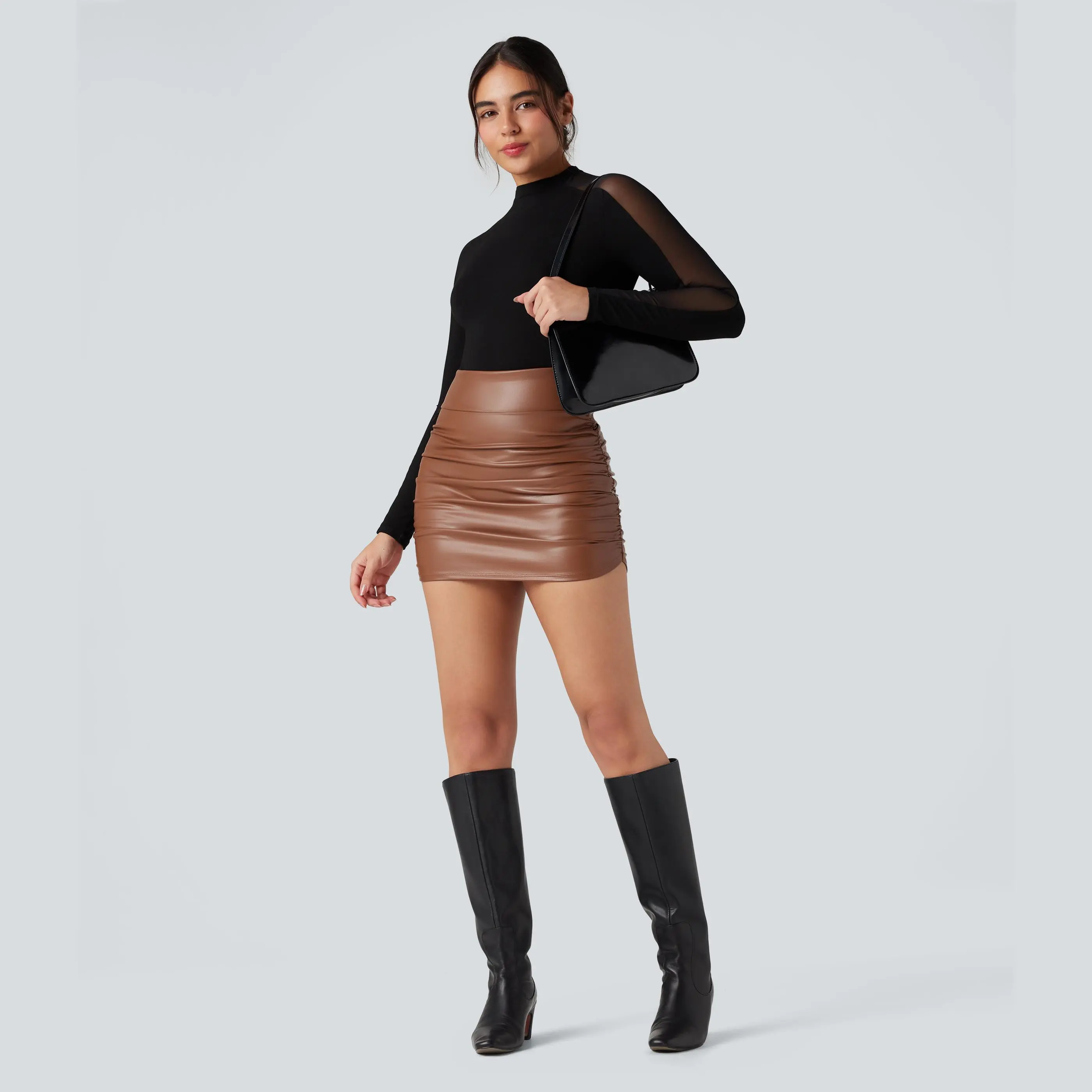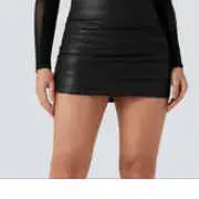 Obsessed with this skirt! Wore it on NYE and got so many compliments! Was able to move and dance all night! Comfortable, attached shorts, stretchy and form fitting. Flattering and the ruching hides imperfections! True to size. I’m 5’4 and 135 pounds wearing a small.