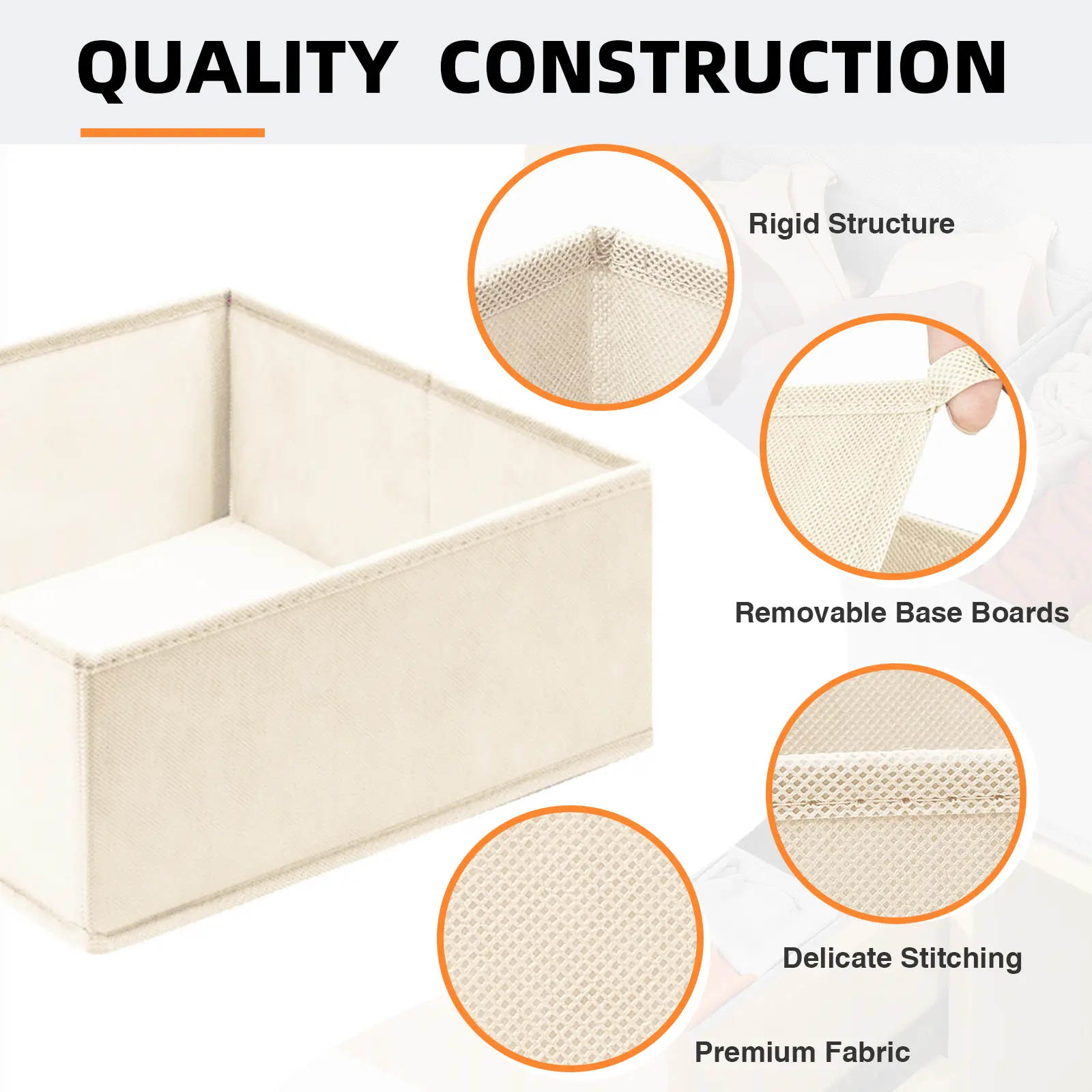 ·【QUALITY STRUCTURE】These dresser drawer organizers feature robust non-woven fabric and expert stitching for extra durability. Enhanced with sturdy boards on the sides and bottom, these organizer bins stay rigid for years. Odorless and perfect for nursery baby clothes storage.
