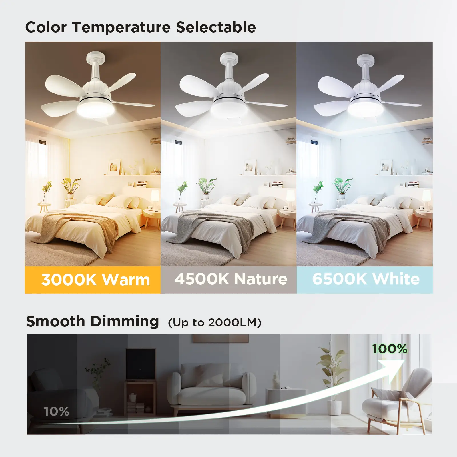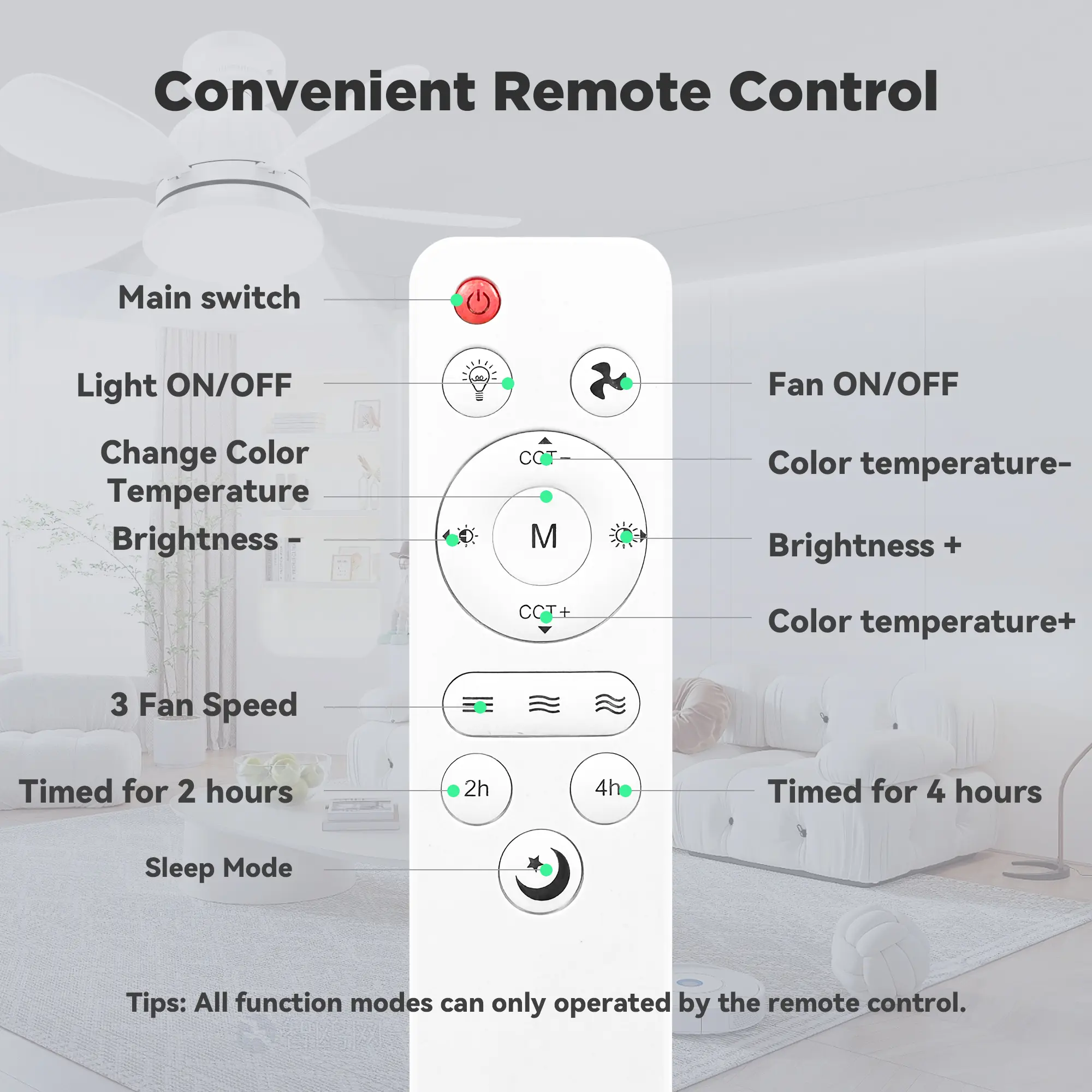 【Smart Control】: Comes with a handy remote for easy operation, enabling users to change settings such as wind speed and light intensity from a distance.