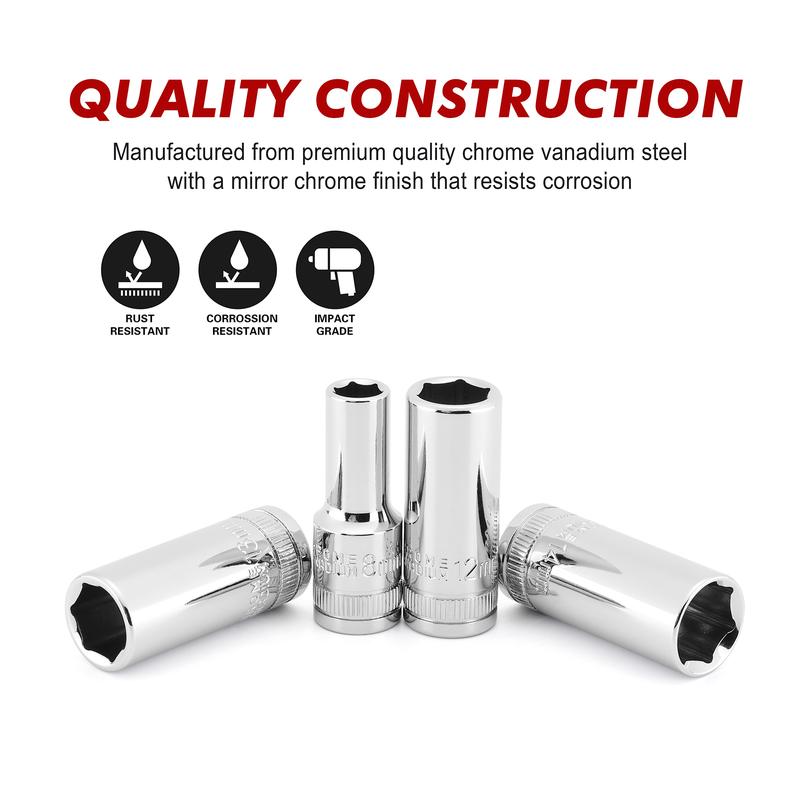·All tools are made from premium quality chrome vanadium steel with a mirror chrome finish that resists corrosion.