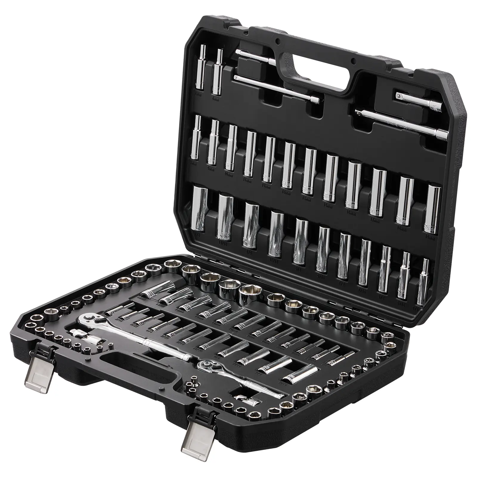• PE-HD Portable Storage Case: This socket and ratchet set features a lightweight and portable design for easy carrying and storage. Neat compartments ensure you always grab the right piece for the job. No more hunting, just a toolbox that gets you right into the action, wherever you are.