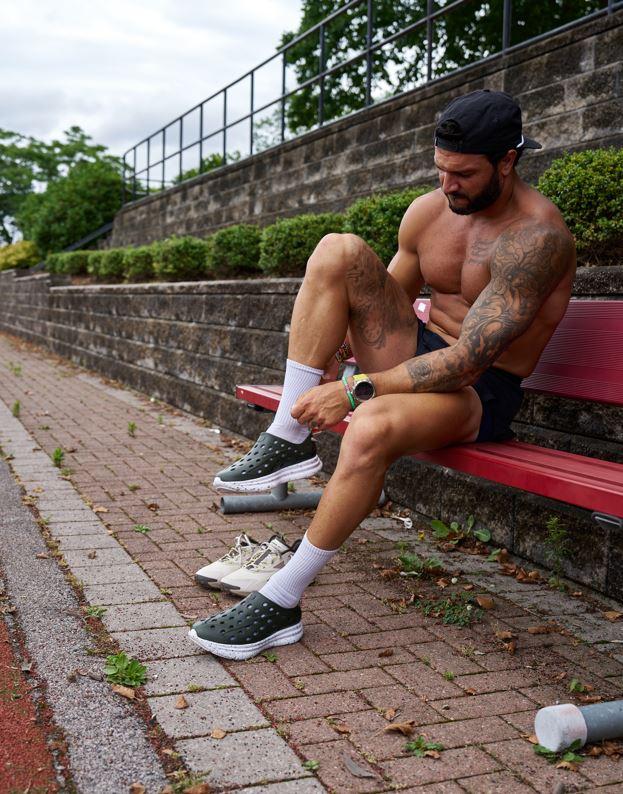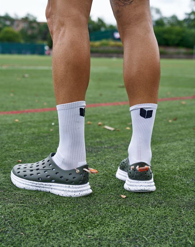 KANE Structured Crew III Socks bring comfort to your post workout recovery with extra cushioning under the heel and forefoot with a supportive arch band. Features KANE leaf logo on left and right of sock.