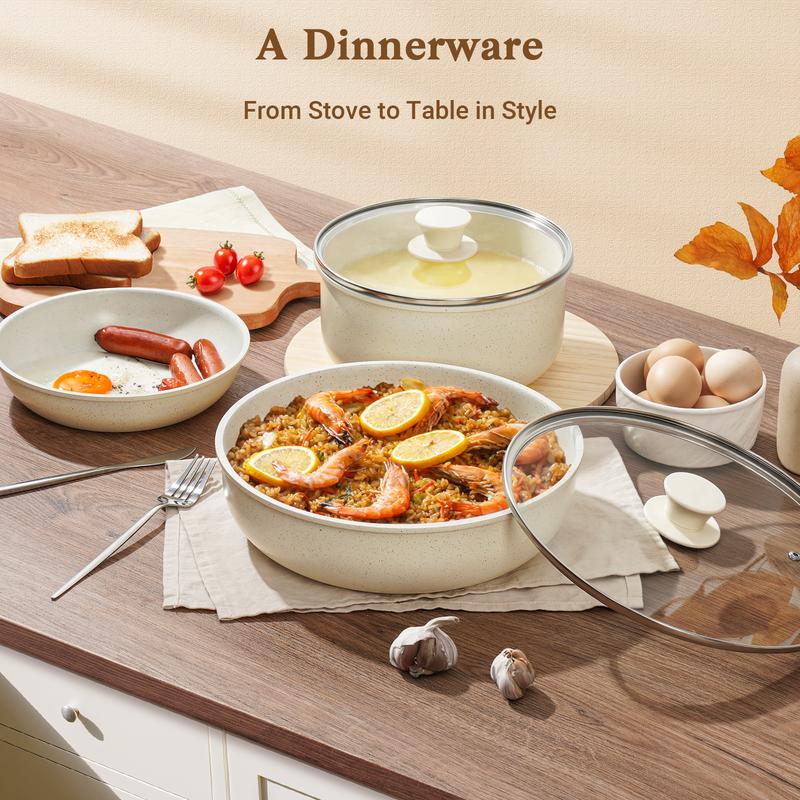 ·Suitable for All Stovetops: Whether you have a gas, electric, or induction cooktop, this kitchen cookware set is compatible with all stovetop types, offering flexibility for various kitchen setups.
