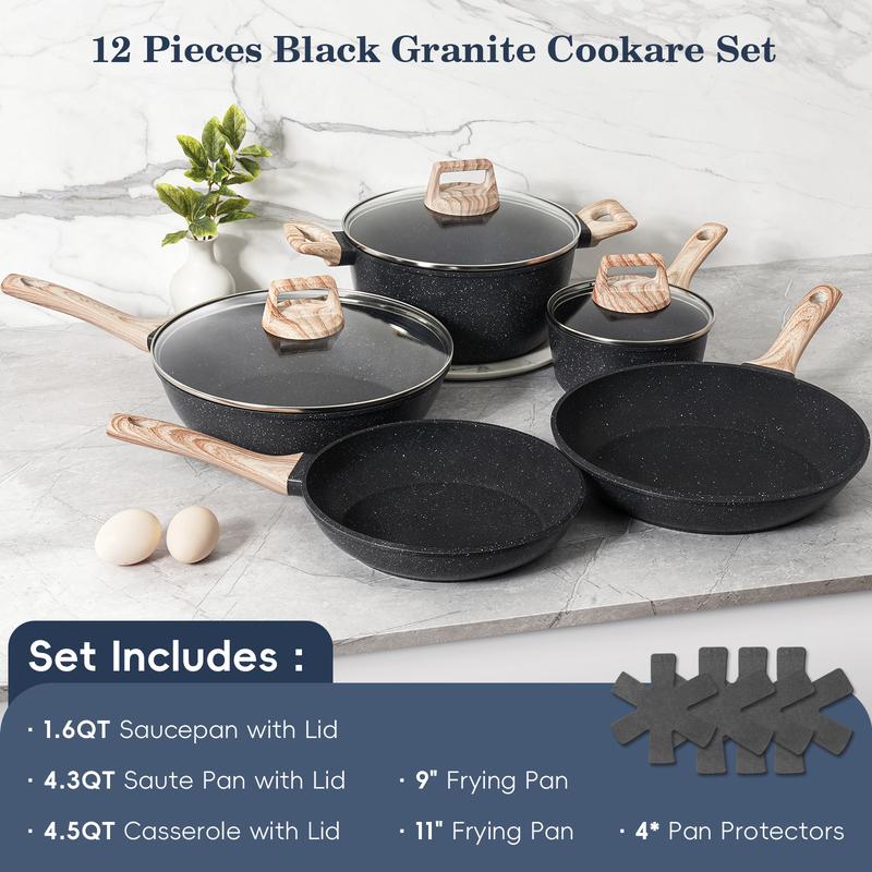 ·Superior Granite Quality: Feature premium granite coating ensures long-lasting durability and exceptional non-stick properties, making cooking a breeze. Non-toxic and PFOS & PFOA-free,SGS Approved cookware sets allow you to cook healthy and safe.