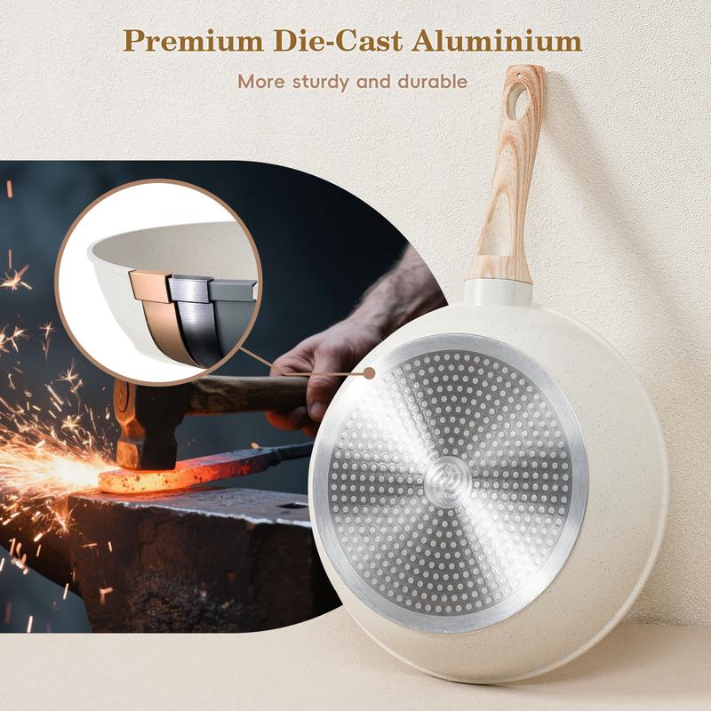 ·Naturall Nonstick Coating - Granite non-stick of pots and pans set is healthier and scratch-resistant with excellent food release. Cooking requires less oil for a healthy, low-fat diet.