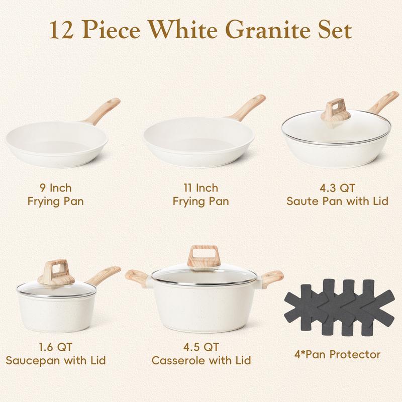 ·Safe, Non-Toxic Cookware You Can Trust - Designed for healthier, worry-free cooking. Crafted with a durable granite non-stick coating free from harmful chemicals like PFOS, PFOA, lead, and cadmium, this pots and pans set ensures your meals are as clean and wholesome as the ingredients you use.