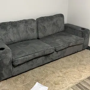 For the price, the couch is structurally sound and the upholstery is of quality. It is a soft corduroy gray. It feels wonderful and is very comfortable.