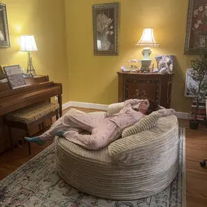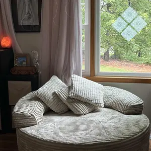 Discover the ultimate relaxation solution with the Ovios 59" W Oversized Round Sofa Bed - Fluffy Lazy Bean Bag. This modern deep seat couch is designed for comfort and style, making it an ideal choice for your living space.