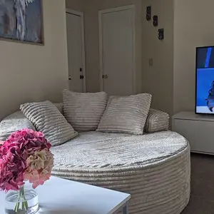 Elevate your living space with the Ovios 59" W Oversized Round Chaise Lounge, where comfort meets style.