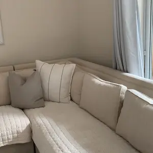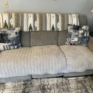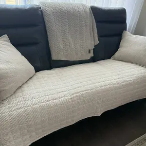 This turned out to be much better than I thought. Fits perfectly to my couch. It’s soft and not too thick. I love that it has grips on the back, so it doesn’t slide off the couch. I mainly bought it because my dog is ruining the leather of the couch. We will see how it holds up after a wash.