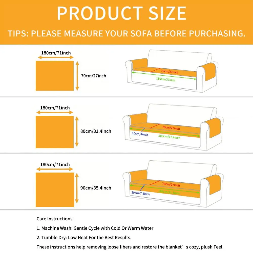 The description and the picture of this product is deceiving. I guess my bad for not knowing the exact measurements of my couch but I did order a 3 seater option thinking it would fit. It’s not as shown or described. I ordered a single seater as well for my recliner. Again. Not as shown