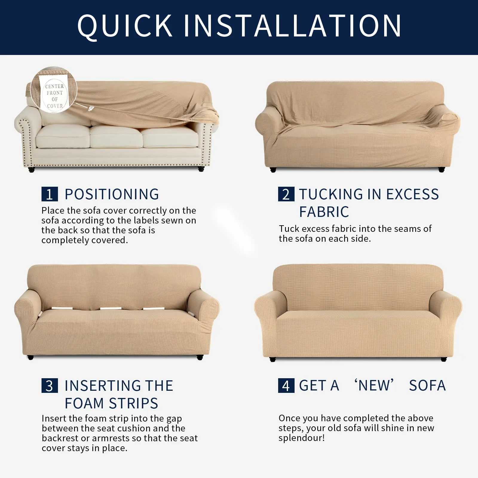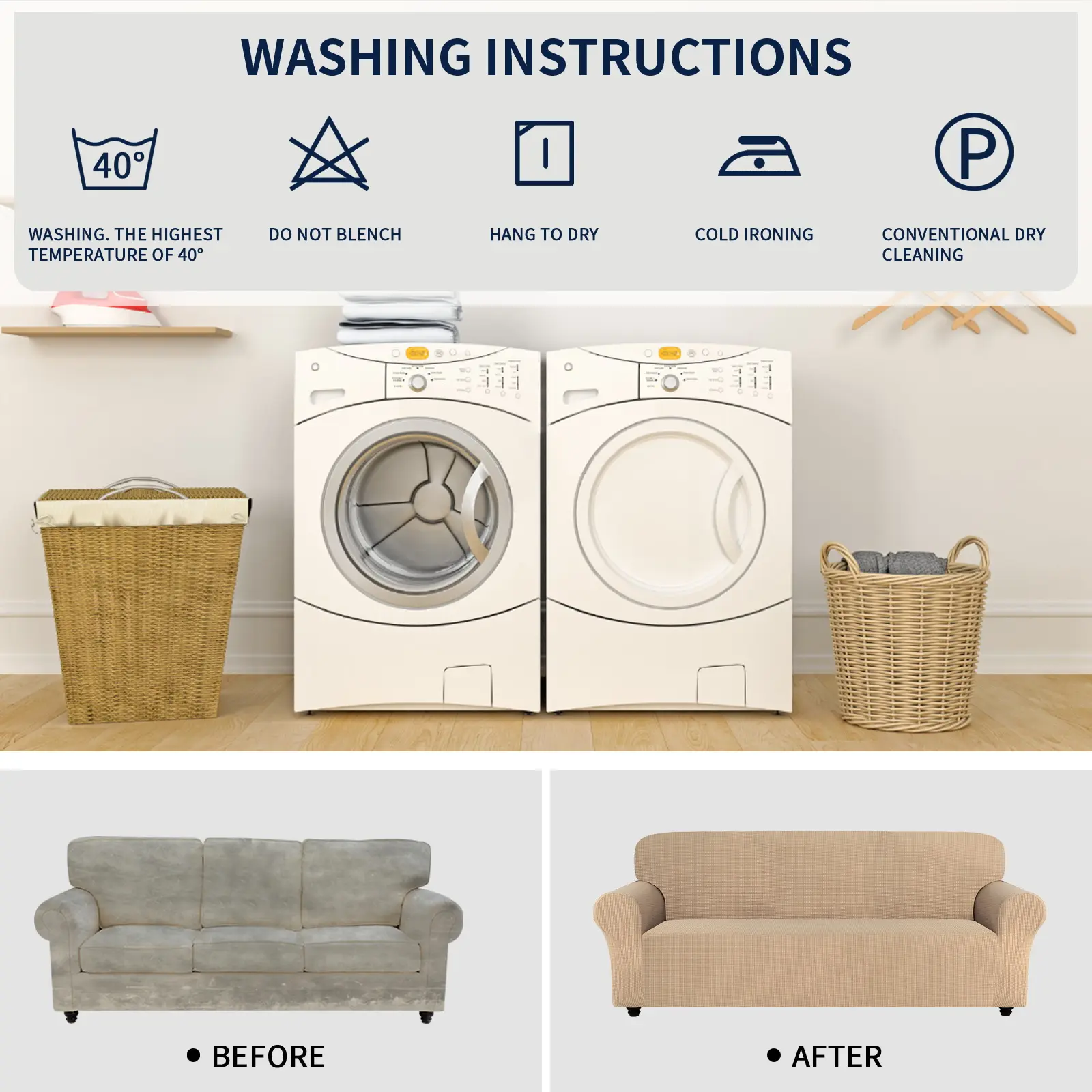 The perfect couch covers! They're thick, water resistant, durable, soft, comfy & machine washable w/out losing color or shape Definitely recommend & I'm buying another set. Don't spend hundreds on the same covers like I originally did! The same covers are being sold online for over $200 for the set!