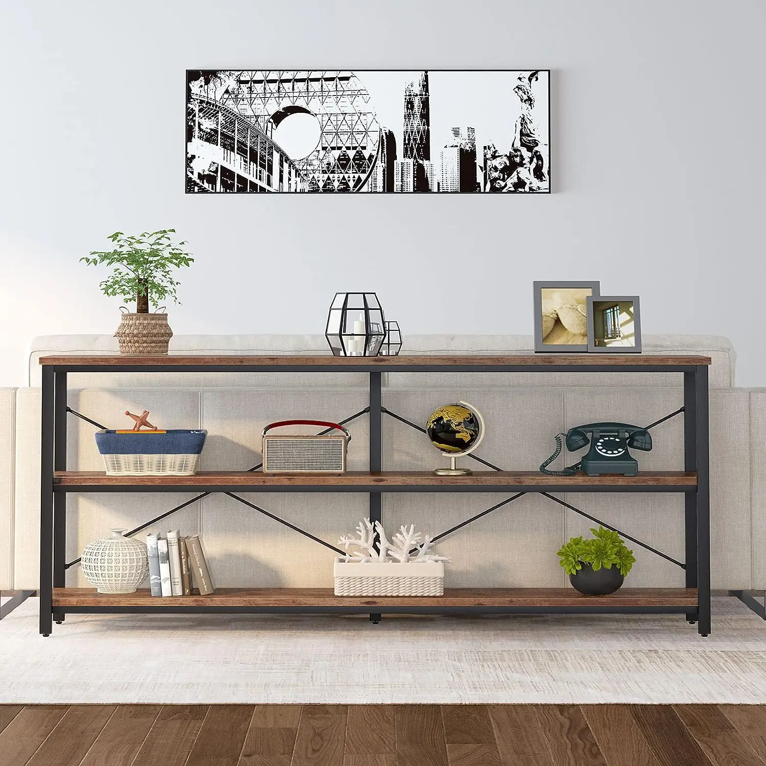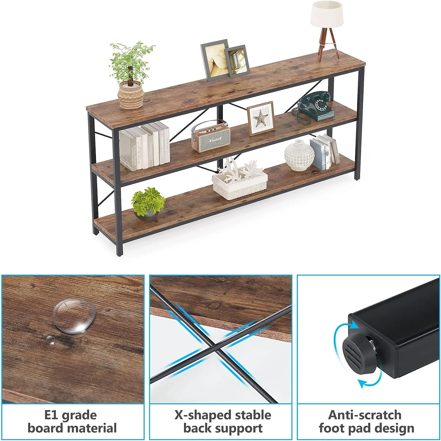 71 Inch Extra Long Sofa Table with 3-Tier Storage Shelves, the perfect addition to elevate your living space. Crafted with superior quality, this functional and stylish sofa table combines a sleek design with ample storage capacity, making it a must-have for any modern home.