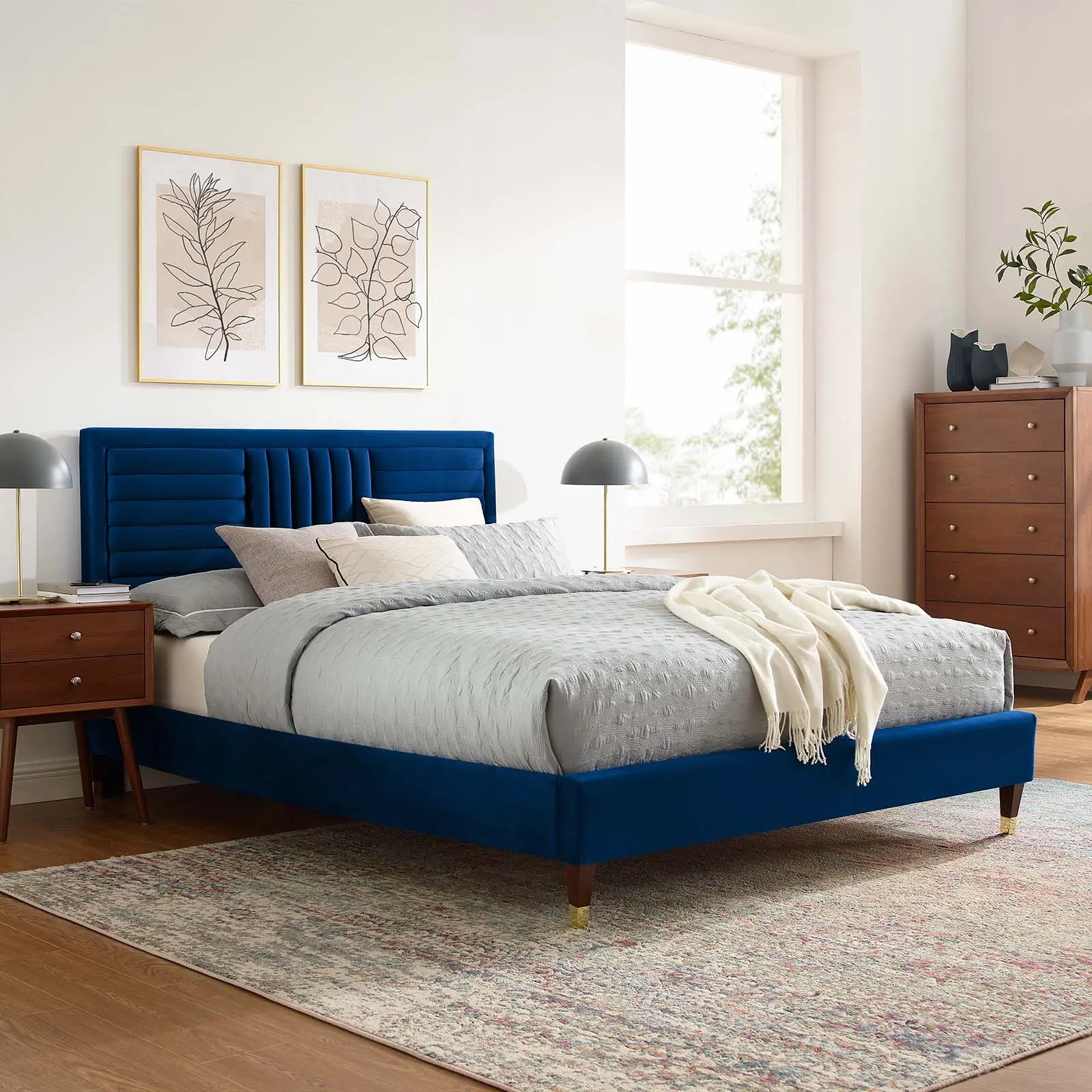 5. Modway Sofia Channel Tufted Performance Velvet Full Platform Bed in Navy