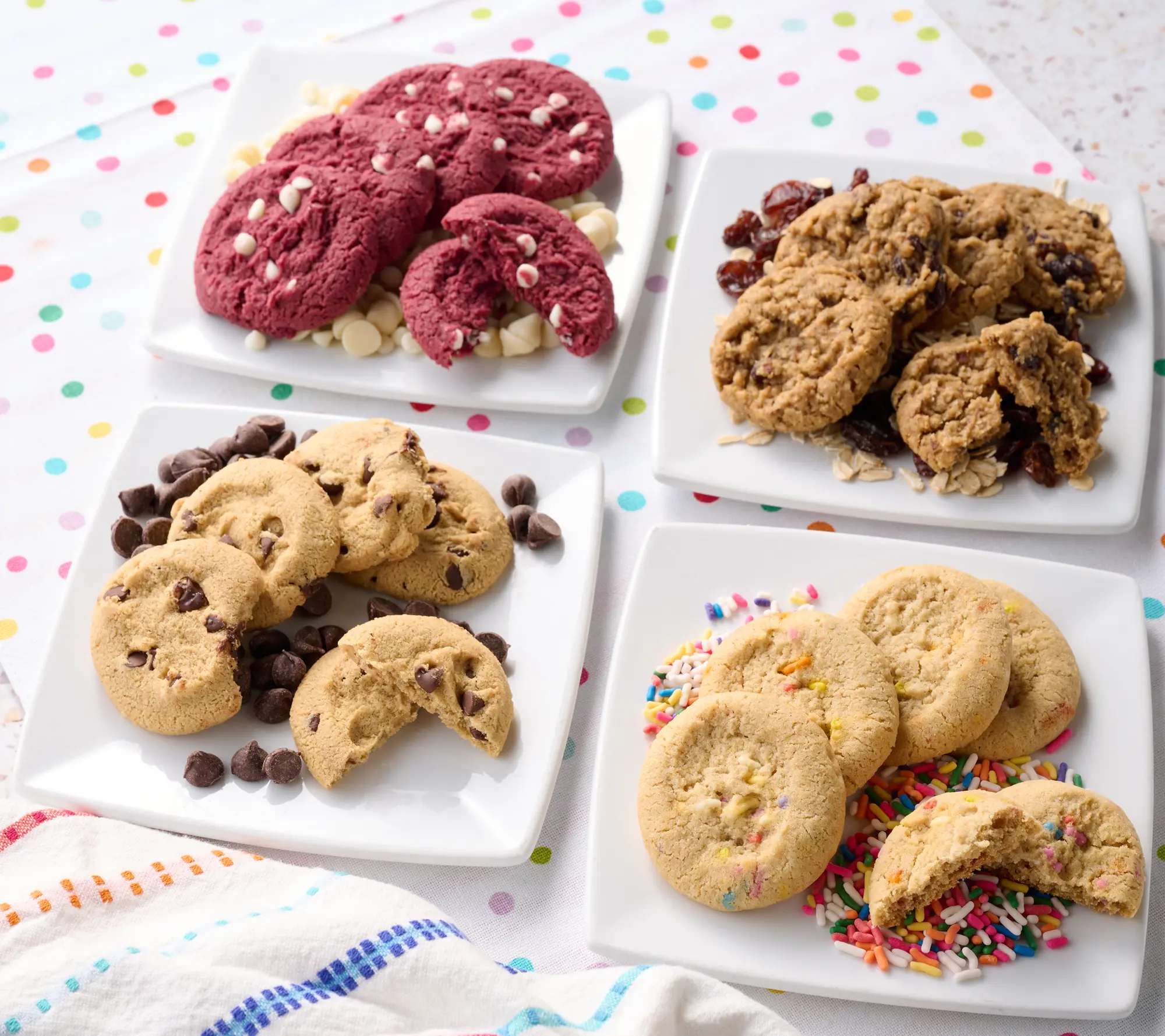 ·Combo: one box each of chocolate chip, confetti, red velvet, and oatmeal raisin
