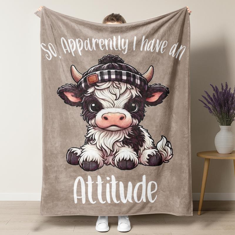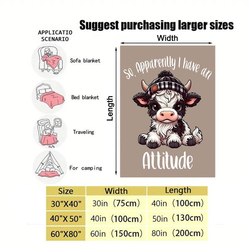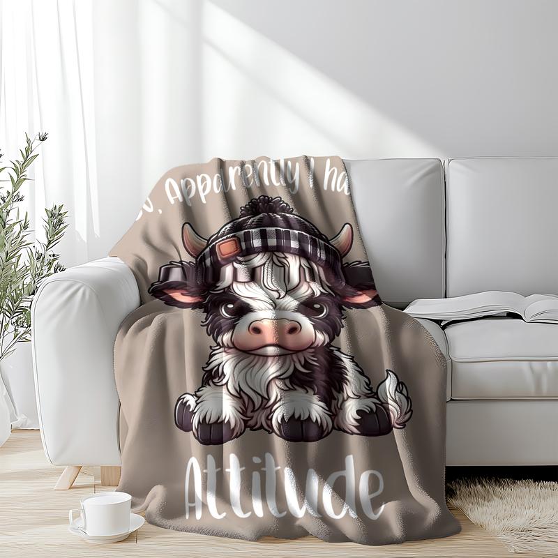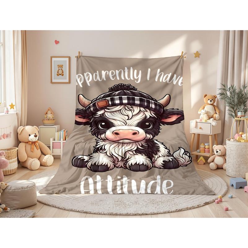 Cartoon Cute Cow Pattern Blanket,1 Count Soft Cozy Lightweight Throw Blanket, Air-conditioned Room Blanket, WarmNap Blanket for Home Office Travel Camping