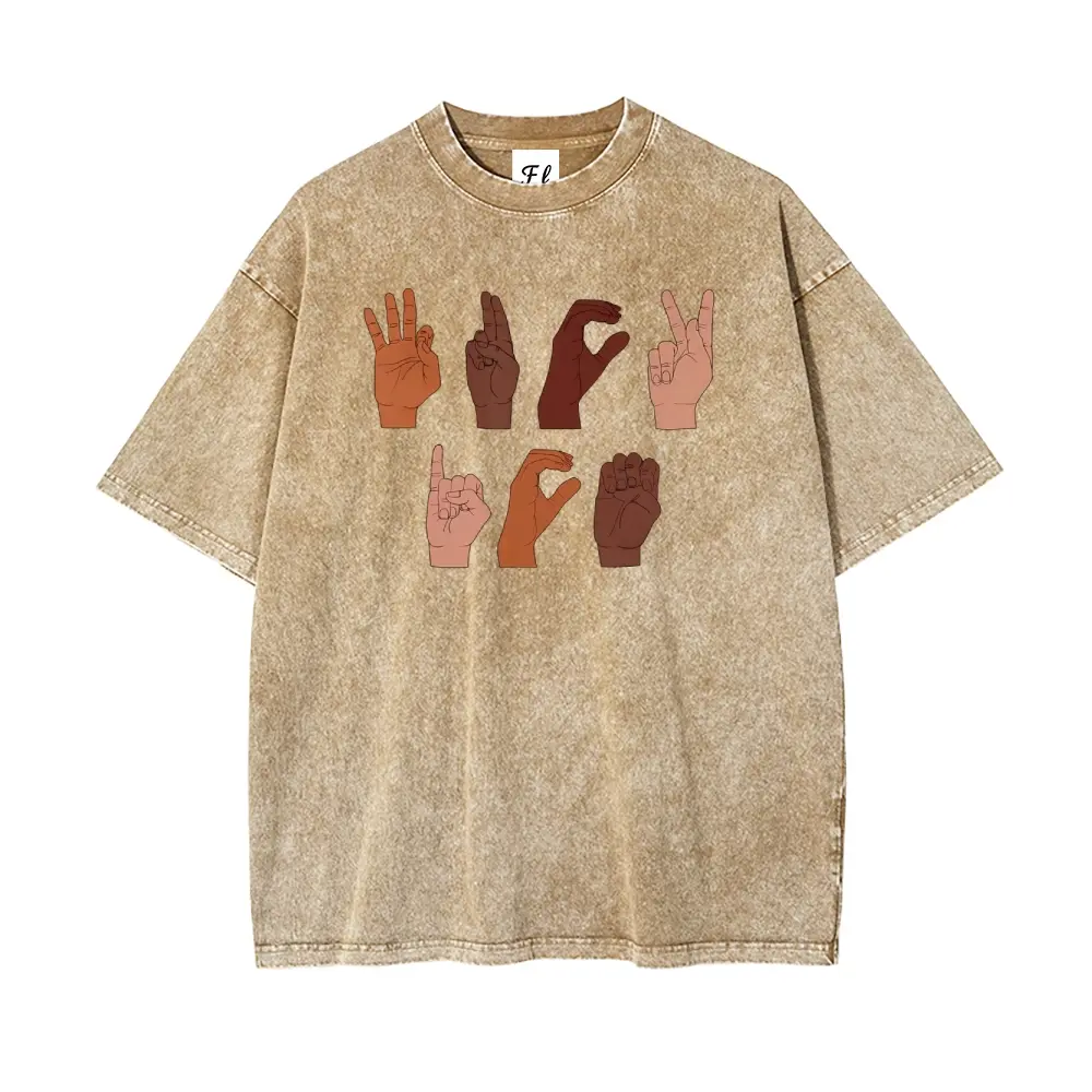 5. Soft Cotton Tee F ck ICE Hand Sign Language Anti Deportation Chinga La Migra T-Shirt Oversize Unisex Washed T-Shirt for Women and Men's Unisex Fit Batik Cotton Oversize Streetwear Menswear Super Soft Pre-Shrunk