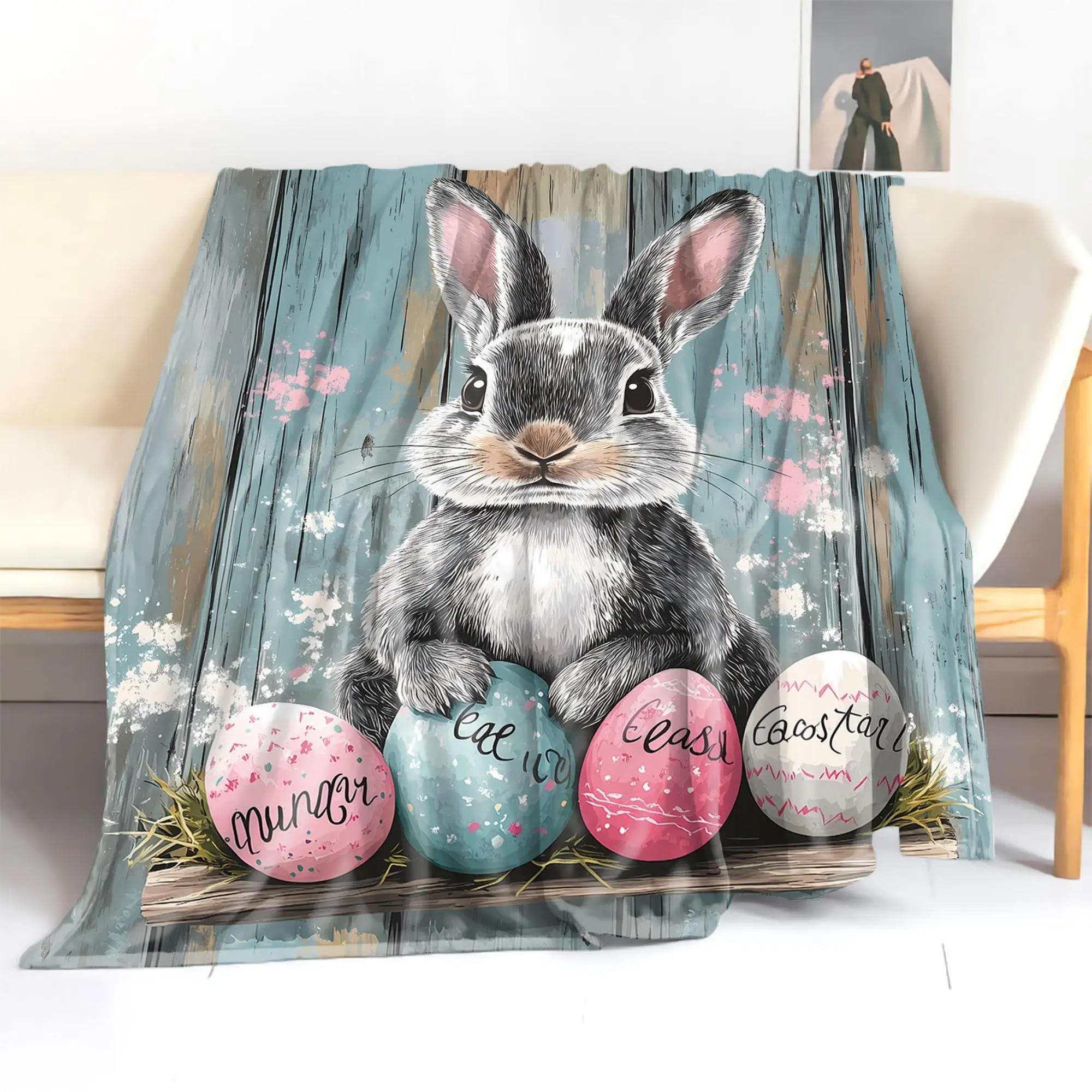 Easter Rabbit & Egg Pattern Blanket, 1 Count Soft Comfortable Throw Blanket, Cool Bedroom Bedding Blankets, Warm Napping Blanket for Home Office Camping, Soft Fluffy Blanket, Cozy Throw Blanket
