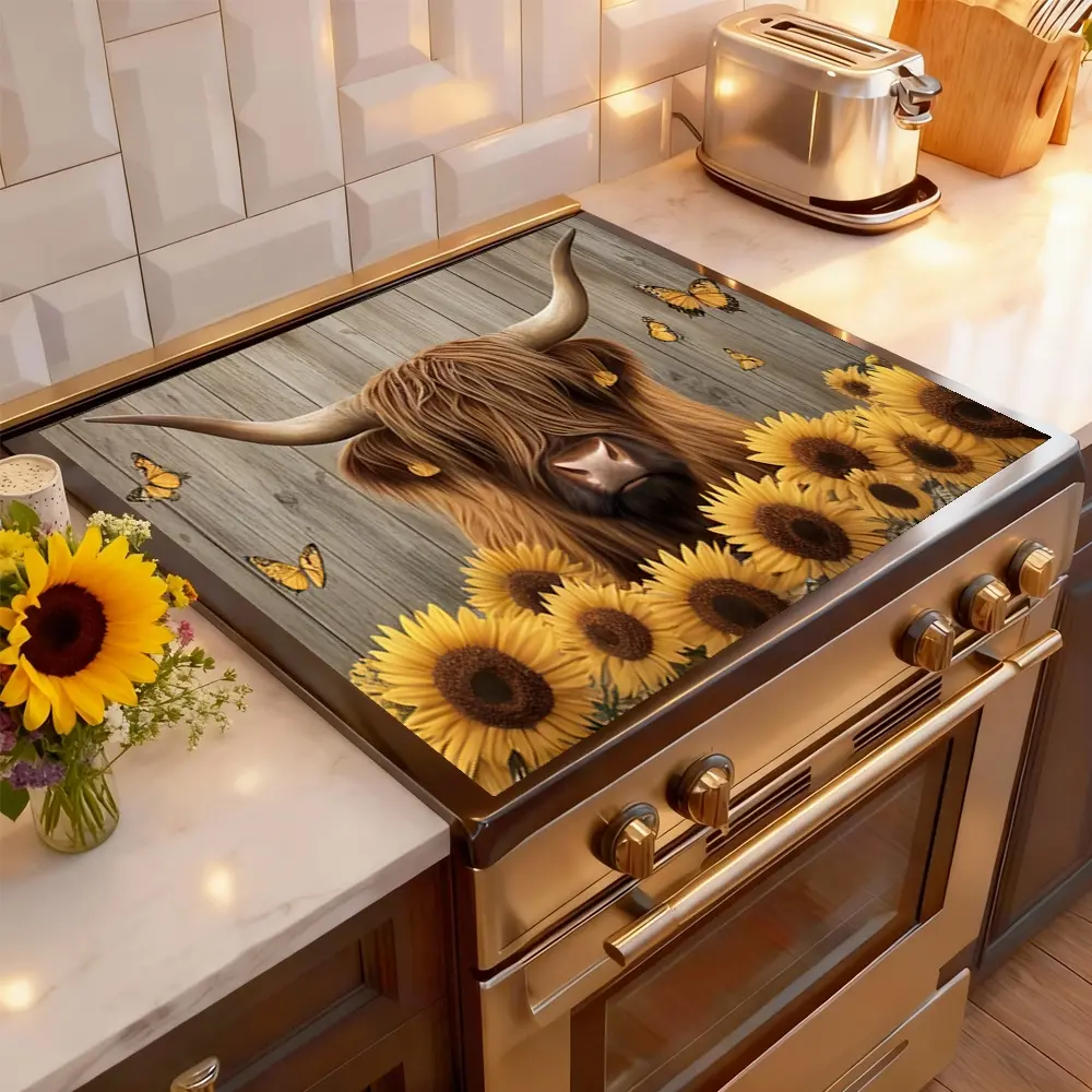 Soft Electronic Stove Panel Protector Pad, Cow Wood Grain Sunflower Design, Scratch Resistant, Easy to Clean, Multi-Purpose Kitchen Cover, Stove Plate