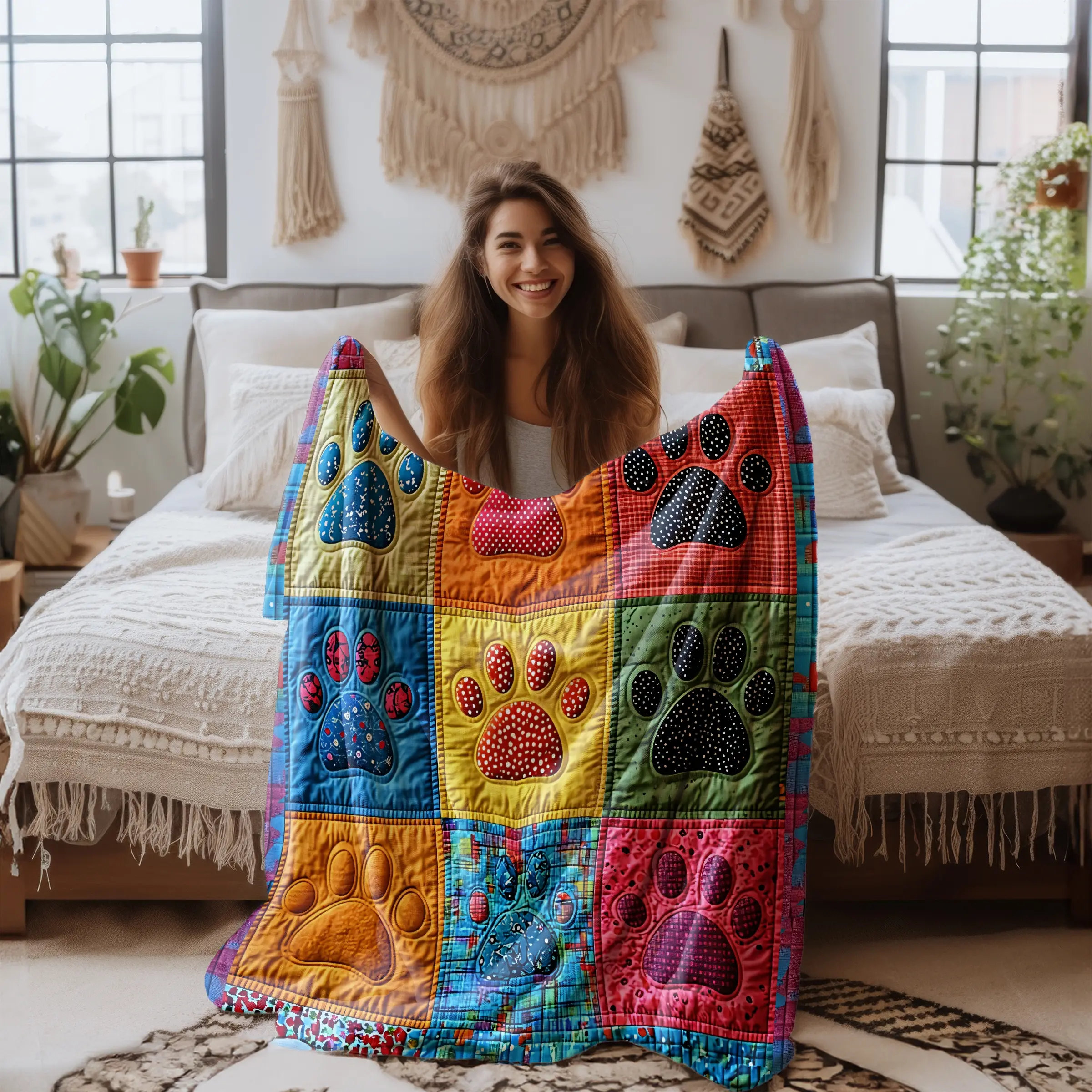 【Unique Paw Print】: The innovative paw print design sets this fleece blanket apart, adding a playful touch to your home decor.