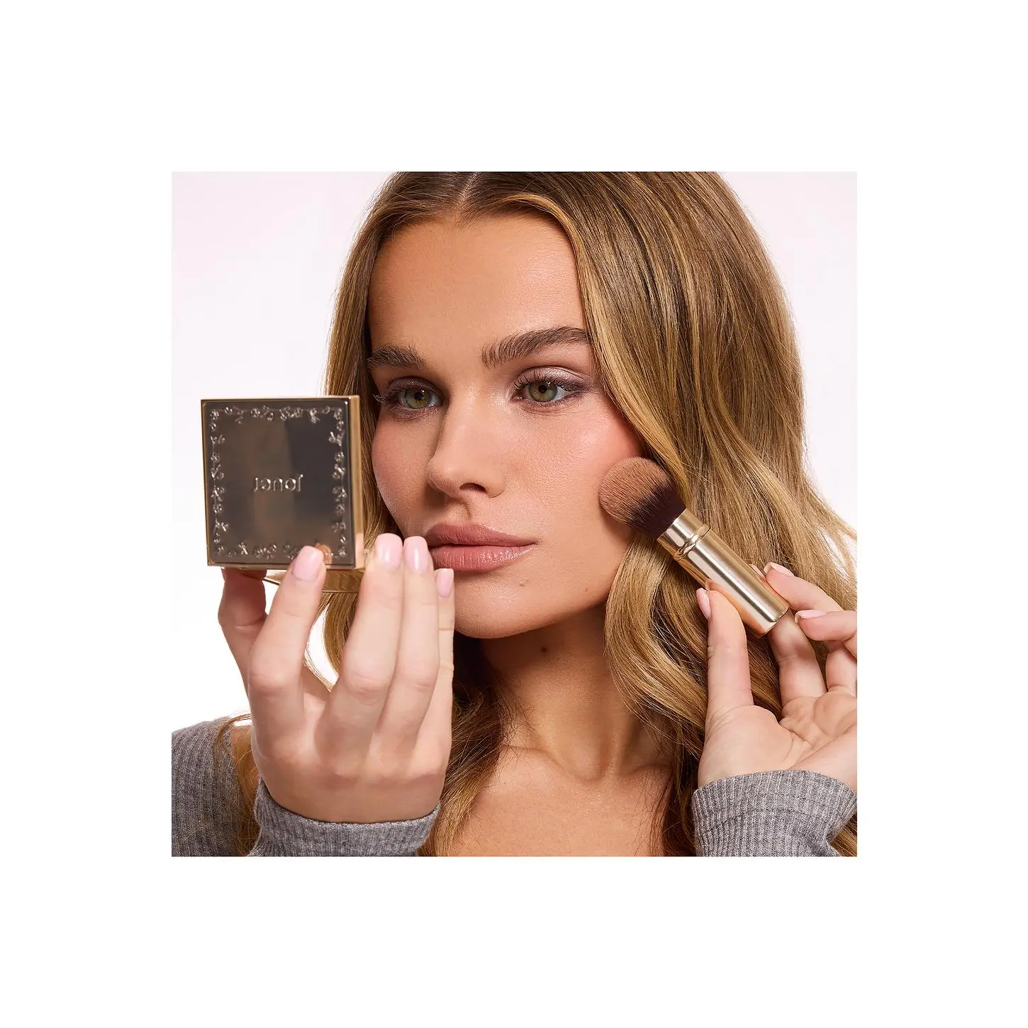·Dust over face with a powder brush.