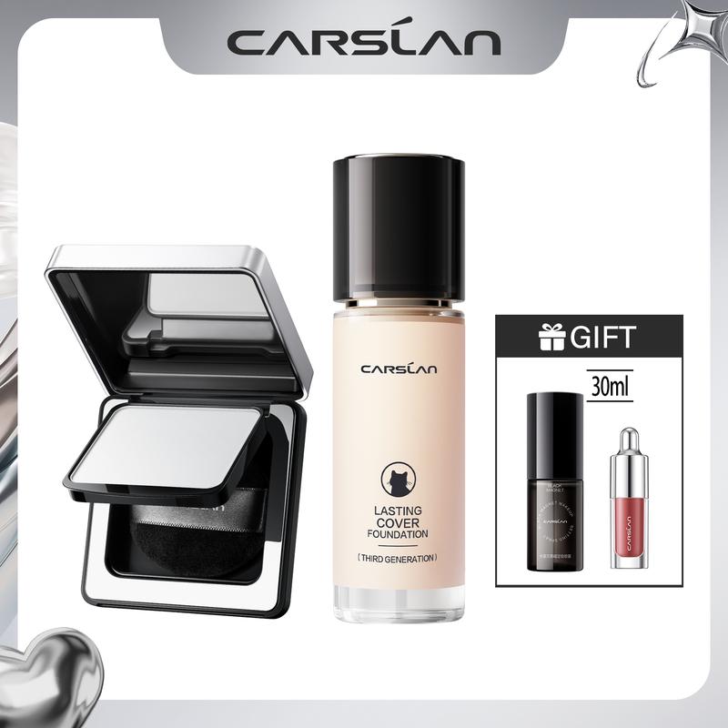 [2.0]CARSLAN Black Magnet Soft Focus Powder+24H Longlasting Cover Liquid Foundation Makeup, Summer Longwear Matte Face Makeup Set[2.0]CARSLAN Black Magnet Soft Focus Powder+24H Longlasting Cover Liquid Foundation Makeup, Summer Longwear Matte Face Makeup Set