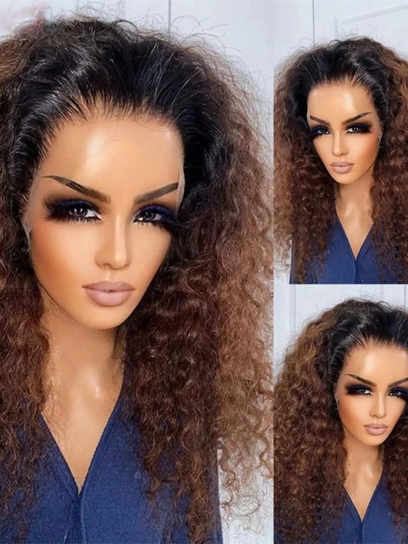 Soft Non-Glue Pre-Banked 26 Inch Long 180 Density Daily Gradient Curly Wig, Ombre 13x4x1 Lace Front Full Cap, Heat Resistant #oqhairgluelesswigs #lacefrontalwigs #brazilianhair #wigproducts #wigfashion #subella360lacewig #handmadebraidedwigs #13x6bodywavewig #miamiwigs #deepcurlywig