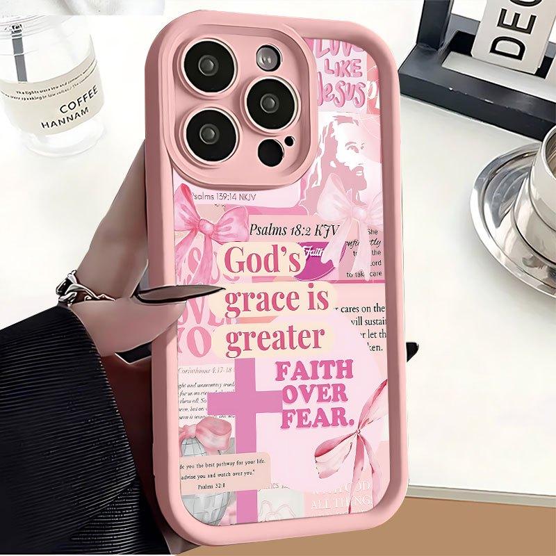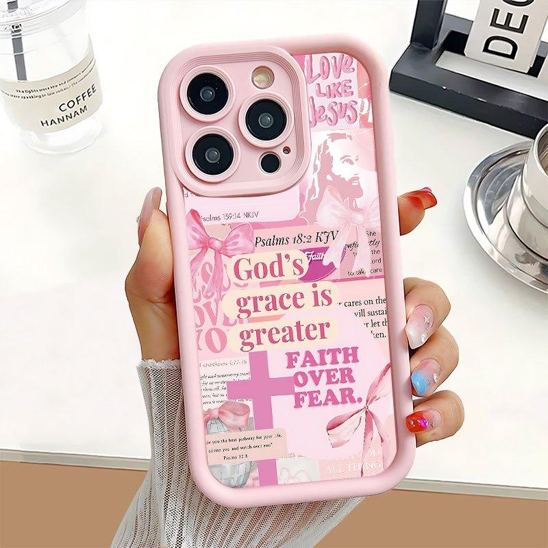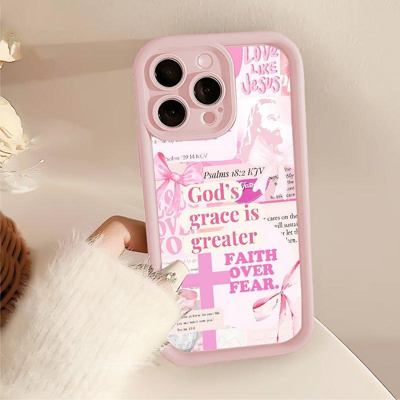 Protect Your Phone Soft Pink Phone Case with The Cross Of Jesus Pattern UV Printing Suitable for IPhone17 11 12 13 14 15 16 Pro Max Air Plus Lightweight and Durable, Stylish Appearance, High-quality Gift