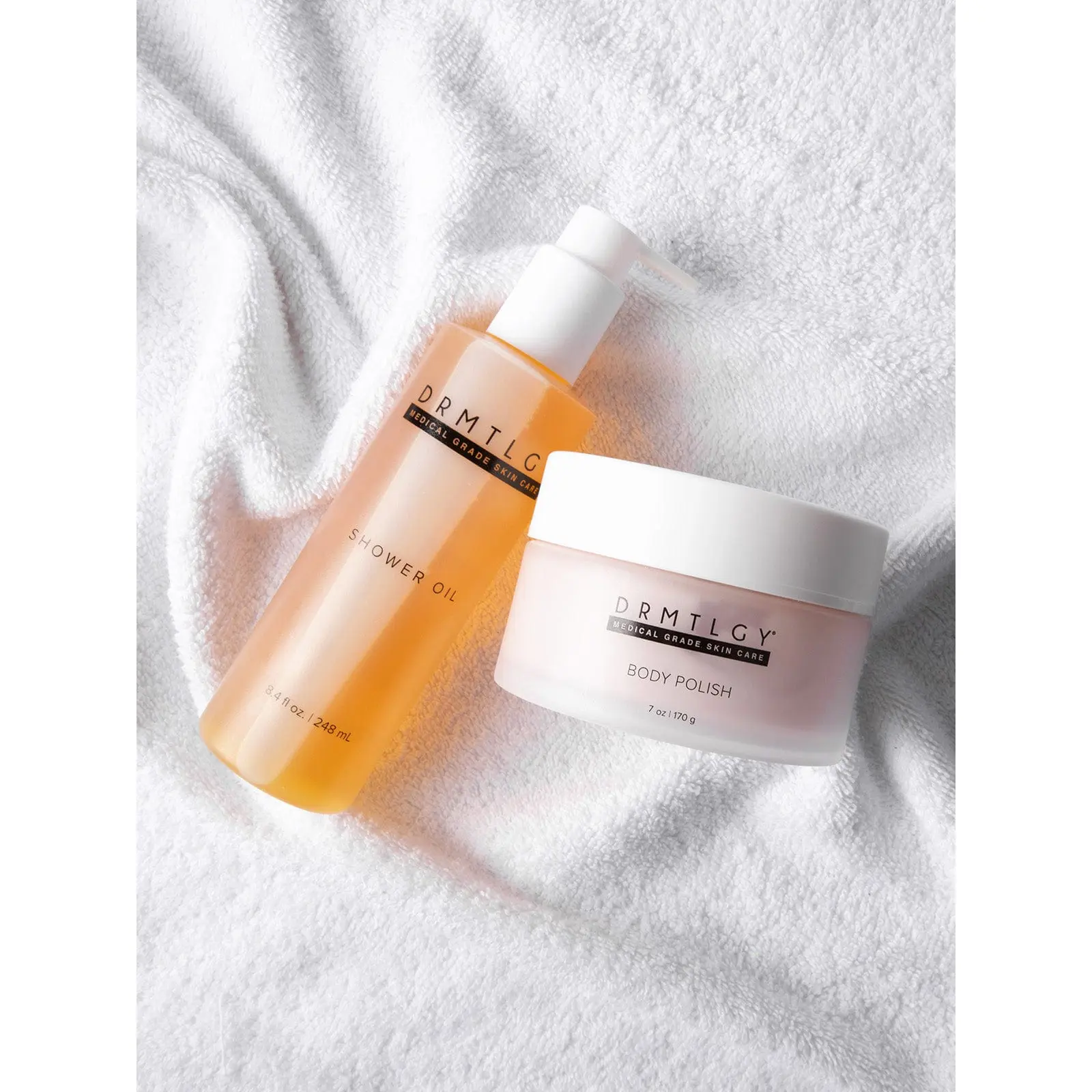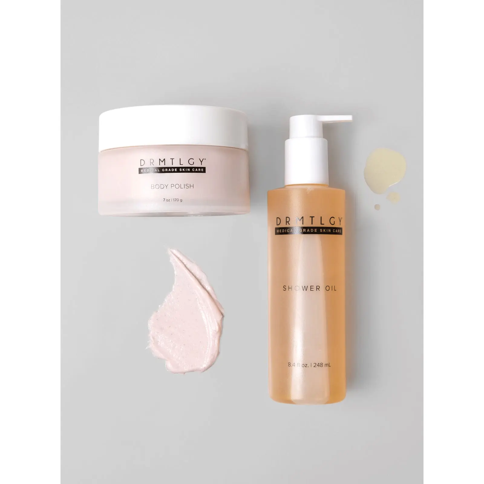 DRMTLGY Soft Skin Essentials Set Your easy at-home body care duo for smoother-feeling skin ✨ This set includes: • Shower Oil – cleanses while helping skin feel soft and hydrated • Body Polish – gently exfoliates to help smooth rough, dry areas Perfect for: ✔️ Dry or dull-looking skin ✔️ Rough spots like arms, legs, and knees ✔️ Anyone who wants softer-feeling skin without a complicated routine #tiktokshopcreatorpicks  #DRMTLGY #DRMTLGYBody #softskin #BodyCareRoutine
