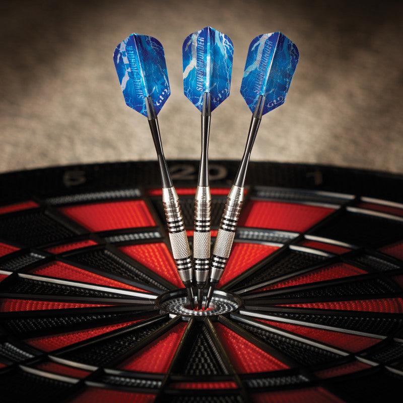 ·High speed slim flights featuring silver thunder graphics allow your darts to fly straight and true, consistency in flight is the path to higher scores.