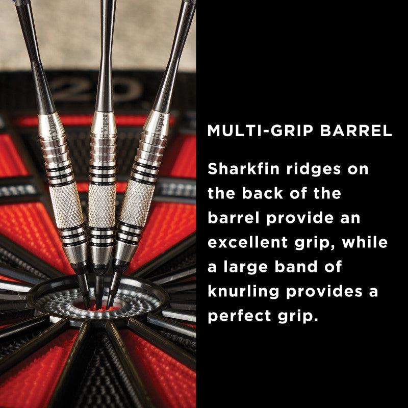 There is no shelter from the storm when you bring the Viper Silver Thunder Soft Tip Darts, designed for use with either electronic dart boards or most sisal dart boards. These darts are packed with features starting with the barrel, fashioned from nickel silver alloy. Constructing the darts in this fashion allows us to bring you tough, weighted barrels without breaking the bank. Nickel plating is a method that has been used in construction for its high end appearance and durability at a lower cost. We use this alloy to provide the highest quality barrels at the best cost to you. Each barrel possesses heavily knurled bands, deep grooves and hand-painted rings, allowing your grip to remain consistent throw after throw. The Silver Thunder Darts feature tough, lightweight nylon shafts. Finally, each dart is finished off with deluxe Silver Thunder holographic designs adorning each flight, for a resounding look on each dart. Each set includes three flights, three shafts, and three 2BA Tufflex II Tips.