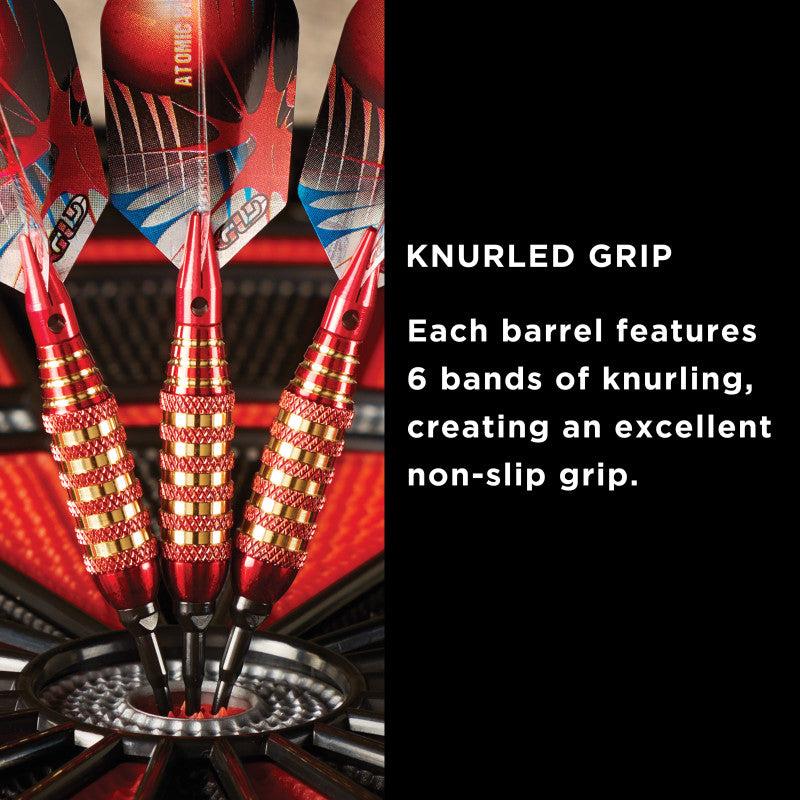 Great things come in small packages with the Viper Spinning Bee Soft Tip Darts, designed for use with either electronic dart boards or most sisal dart boards. These diminutive darts are packed with features starting with the barrel, fashioned from a specially coated brass alloy. Constructing the darts in this fashion allows us to bring you tough, weighted barrels without breaking the bank. Brass is an alloy that has been used in construction for its durability and great looking style, while maintaining a lower cost. We use this alloy to provide the highest quality barrels at the best cost to you. The special anti-slip coating ensures that your misfires will be reduced to a minimum. Each barrel enjoys knurled bands and grooved rings, allowing your grip to remain consistent throw after throw. The Super Bee Darts feature tough, lightweight Aluminum Micro Shafts. These shafts feature locking holes that allow a more secure fit to your barrel; you won’t find yourself retightening these shafts after a shot or two. Finally, each dart is finished off with the signature Bee holographic designs adorning each flight, for a superb look. Each set includes three flights, three shafts, and three 2BA Tufflex II Tips.