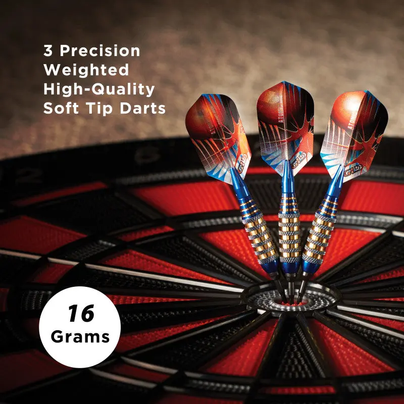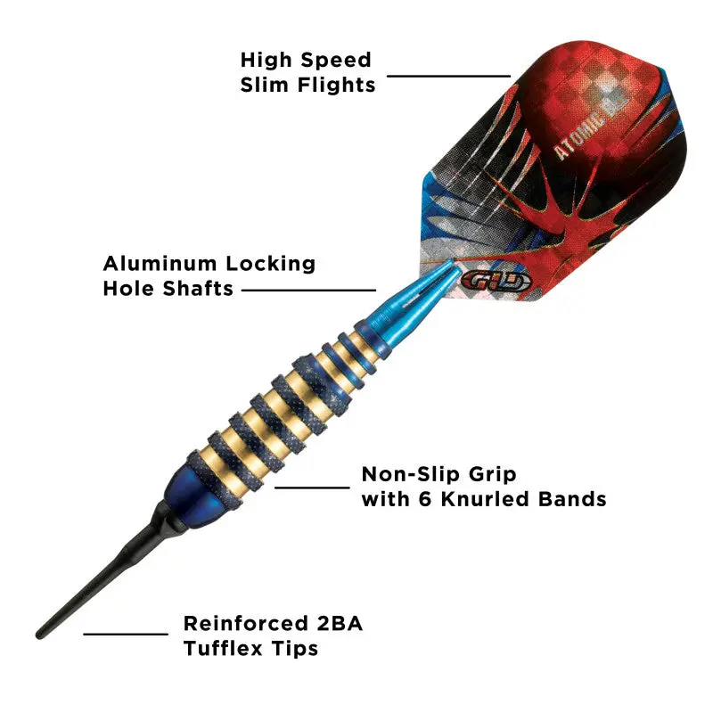 Great things come in small packages with the Viper Spinning Bee Soft Tip Darts, designed for use with either electronic dart boards or most sisal dart boards. These diminutive darts are packed with features starting with the barrel, fashioned from a specially coated brass alloy. Constructing the darts in this fashion allows us to bring you tough, weighted barrels without breaking the bank. Brass is an alloy that has been used in construction for its durability and great looking style, while maintaining a lower cost. We use this alloy to provide the highest quality barrels at the best cost to you. The special anti-slip coating ensures that your misfires will be reduced to a minimum. Each barrel enjoys knurled bands and grooved rings, allowing your grip to remain consistent throw after throw. The Super Bee Darts feature tough, lightweight Aluminum Micro Shafts. These shafts feature locking holes that allow a more secure fit to your barrel; you won’t find yourself retightening these shafts after a shot or two. Finally, each dart is finished off with the signature Bee holographic designs adorning each flight, for a superb look. Each set includes three flights, three shafts, and three 2BA Tufflex II Tips.